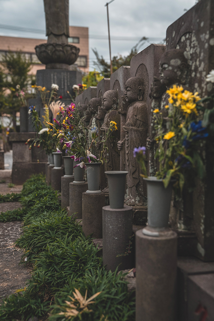 Direction Yanaka. Je n’avais pas assez approfondi ce quartier la dernière fois. Nous avons commencé avec le cimetière de Yanaka. Une atmosphère tellement paisible règne sur le lieu. Des dizaines de chats se reposent sur les tombes et les familles sont là pour les entretenir. Rien de triste, juste une atmosphère paisible.