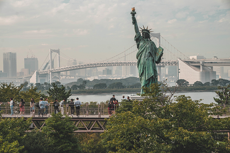 Nous avons ensuite pris la Yurikamome Line à Shimbashi station direction Odaiba, une île artificielle. Si vous prenez le monorail pour vous y rendre, essayer de vous installer à l’avant, tout est automatique, sans chauffeur.