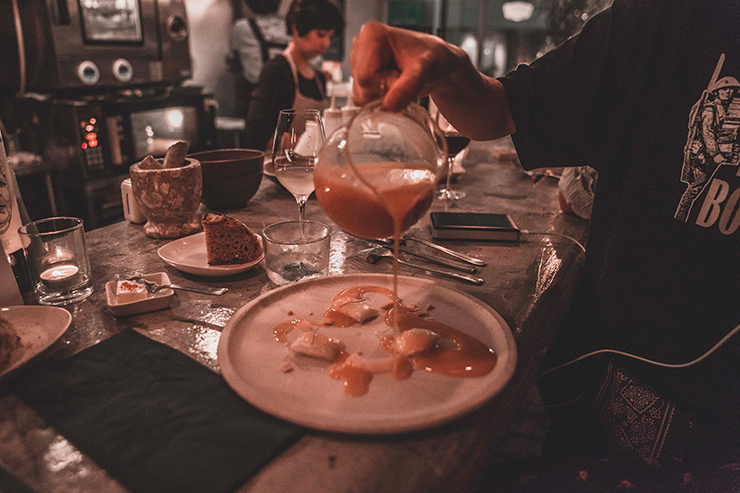 Et l’expérience était à la hauteur de nos espérances (pas évident quand tout le monde vous conseille un lieu). 7 plats accordés avec autant de verres de vin. Les vins sont français ou japonais et tous naturels.