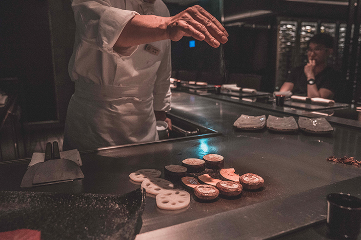 Pour le premier soir nous avions réservé une table à l’hôtel Keio Plaza. Le chef du restaurant Yamanami a cuisiné pour nous, devant nous. C’était un rêve que de vivre cette expérience. Les techniques de cuissons sont incroyables et fascinantes à découvrir en live. Les légumes, le poisson et surtout le bœuf de kobe… tout était parfait. Je vous le racontais sur Instagram mais je ne me suis jamais autant régalée. Le chef était là pour nous conseiller, quoi manger en premier, avec quelle sauce, quelle épice. Sauce soja, vinaigre, poivre, wasabi… ça donne des idées.
