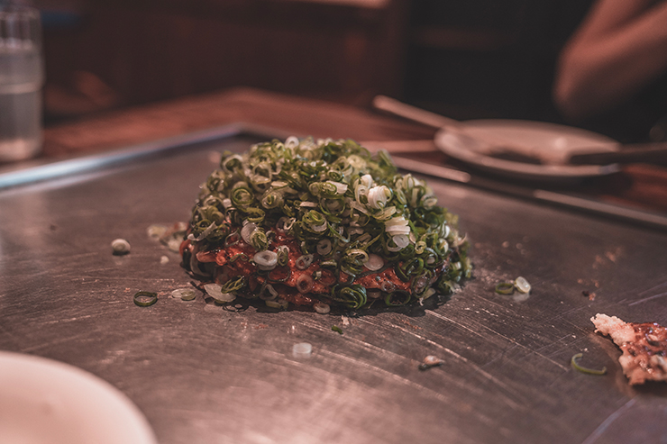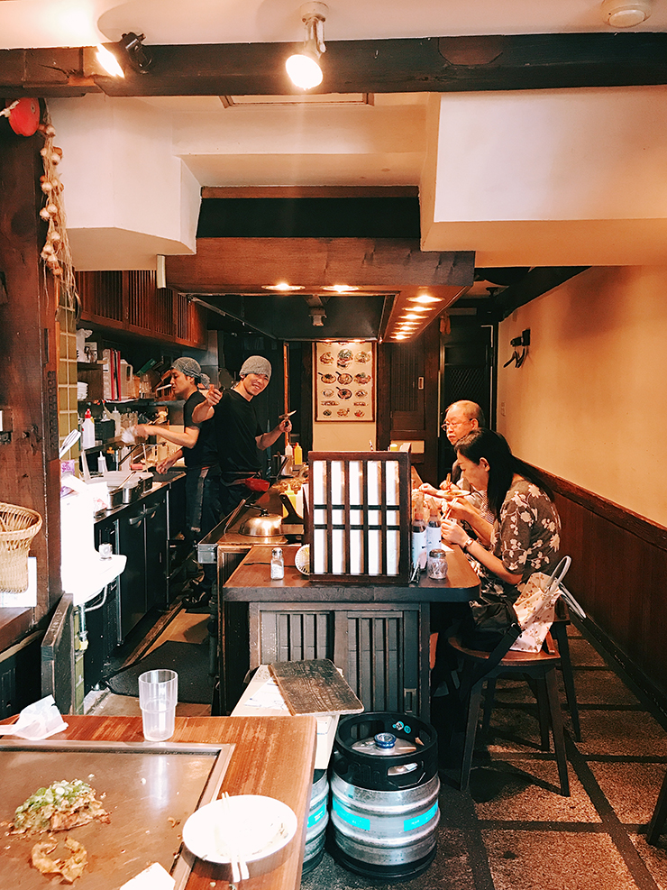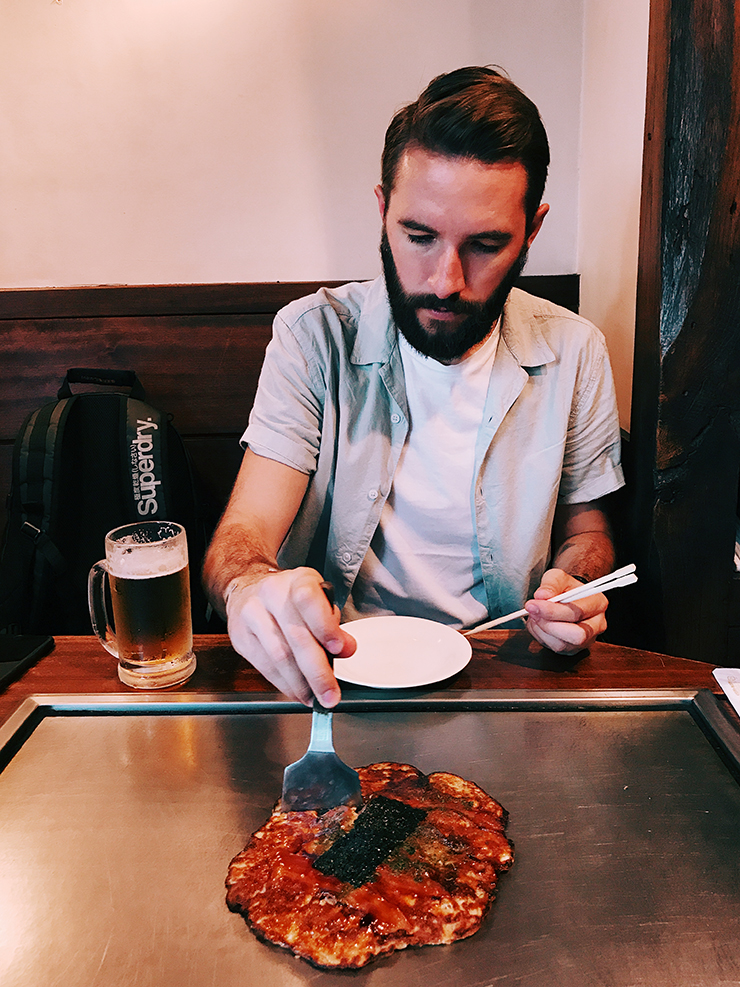 On a d’ailleurs très bien mangé. Chez Hiroki : crèpes de udon et omelettes « okonomyaki ».