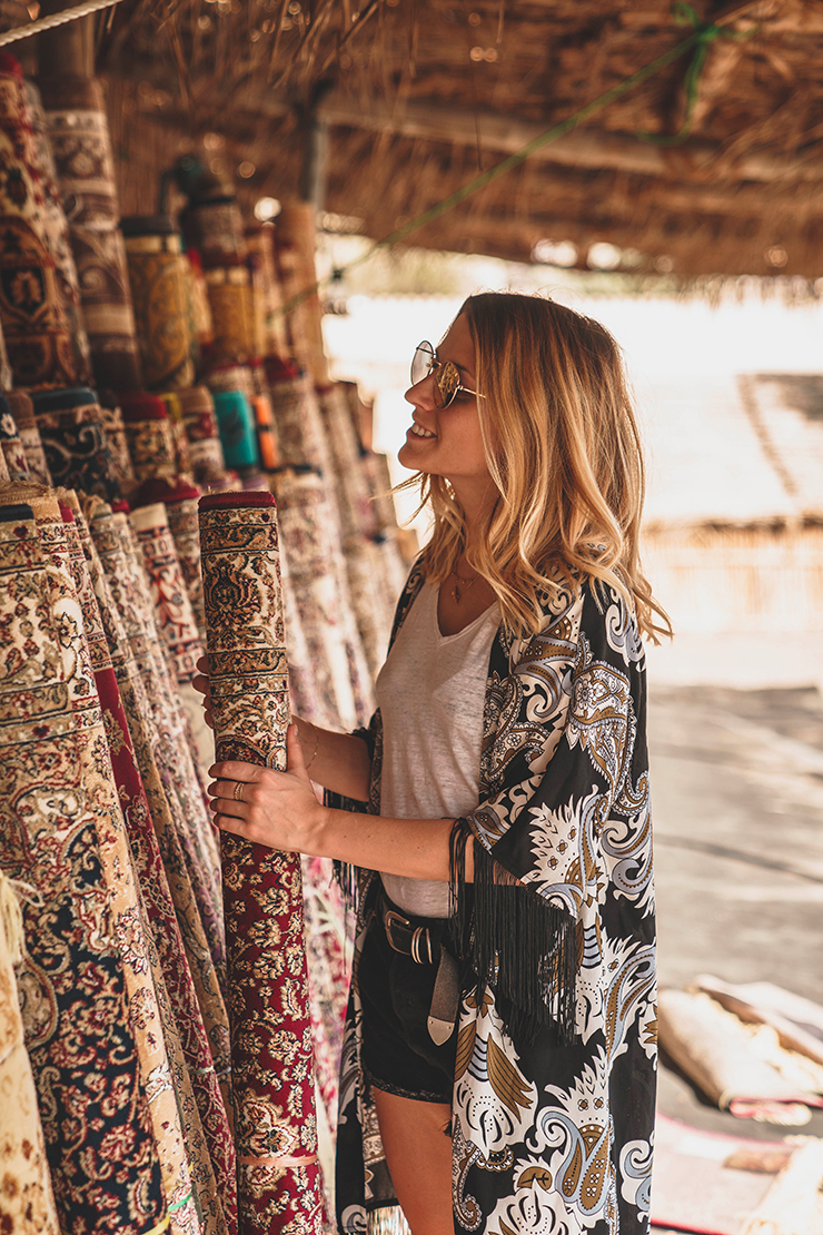 La version « luxe » de cette excursion est à 275€ pour deux personnes (il existe un autre forfait à 160€). Alors oui c’est un circuit touristique et d’habitude ce type d’organisation me fait fuir mais ici tout était si bien organisé, si bien amené. Le chauffeur était adorable, nous étions avec 8 autres personnes et une fois au camp le dîner était bon, accompagné de deux spectacles, nous nous sommes détendus à la belle étoile en fumant une chicha et j’ai même eu la chance de repartir avec un souvenir au henné sur le bras.