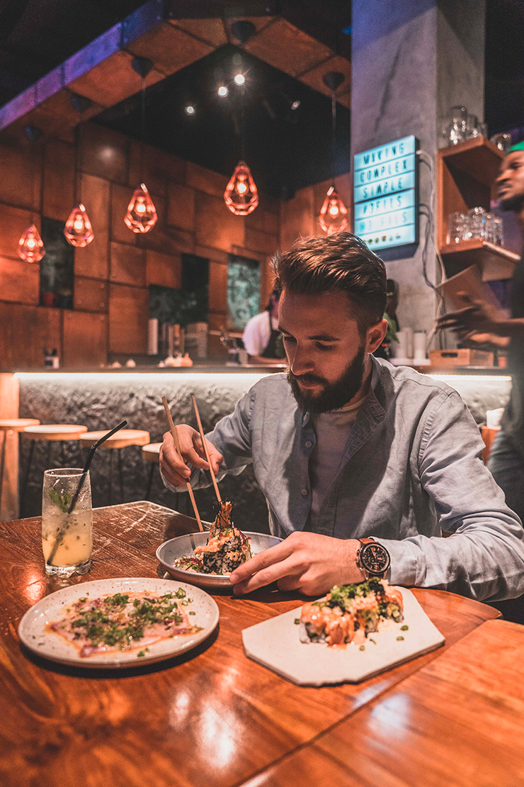 Revenons au restaurant. Une superbe découverte! Une carte hétéroclite : viandes, poissons, sushis, desserts délirants… tous les plats étaient si originaux, une surprise à chaque bouchée. Je me souviendrai toujours d’une glace, servie devant nous dans un cornet puis jetée dans mon assiette à dessert. Quel spectacle!