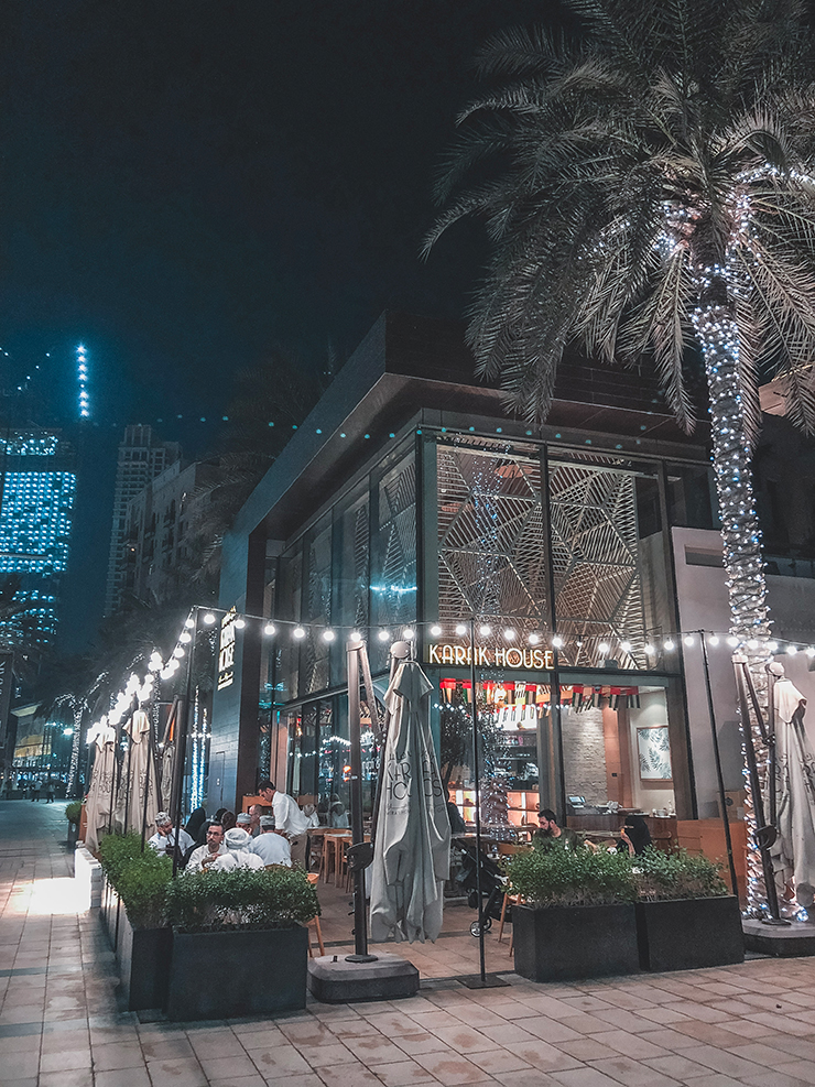 Nous avons ensuite dîné à Dubaï, près de l’hôtel à Karak house. La terrasse était agréable et encore une fois nous avons très bien mangé. J’ai testé le karak, le chai latte local, ma nouvelle boisson préférée (froide comme chaude)^^