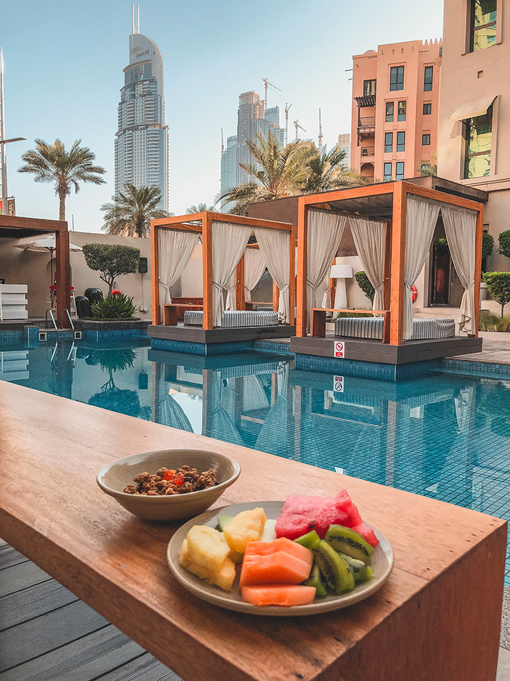 Nous avons séjourné à Vida DownTown, un hôtel vraiment chouette. Plusieurs restaurants, un petit déjeuner à tomber, une piscine, une salle de sport, des chambres très agréables… je vous recommande cet hôtel, pas trop grand, à quelques minutes à pieds de Burj Khalifa.
