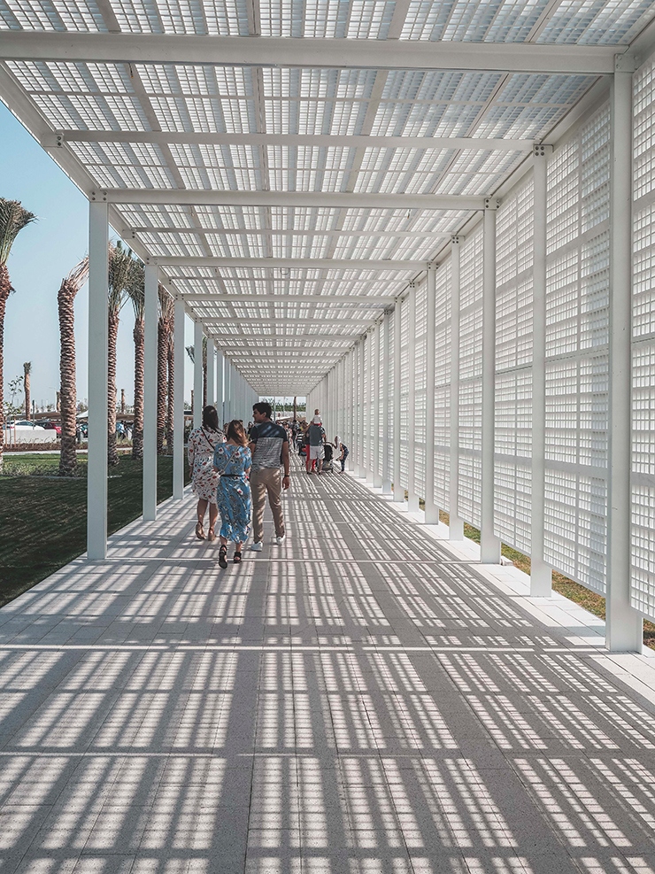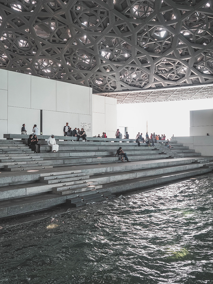 Visite de Abu Dhabi pour notre 3ème jour. Depuis que le projet d’un troisième Louvre avait été annoncé je rêvais de visiter ce musée. Nous avons pris les tickets sur internet, c’est idéal pour rentrer au plus vite (15€/personne). Nous sommes arrivés à l’ouverture, il y avait bien plus de monde par la suite, un bon plan.