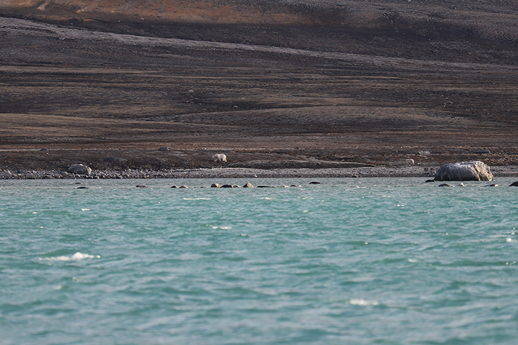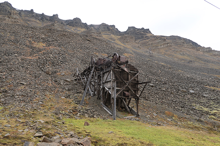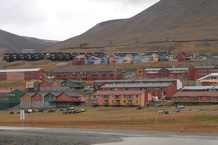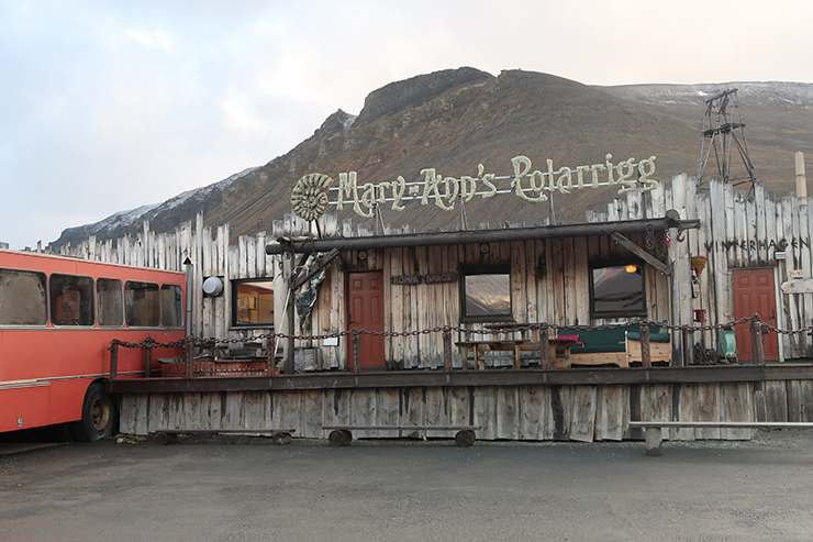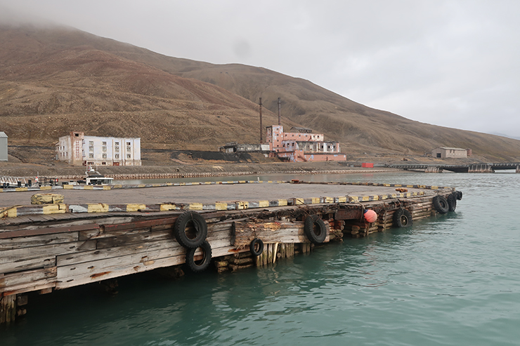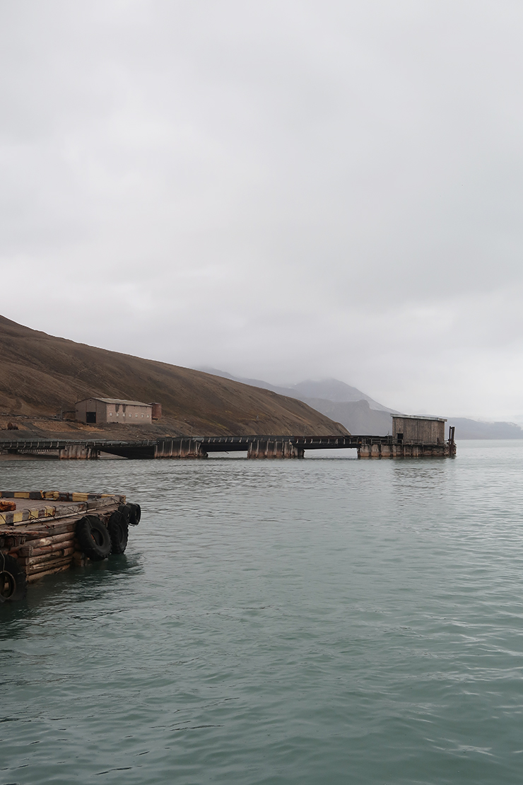 Dernier jour, le beau temps était au rendez-vous. Nous avons ainsi pu reprogrammer la visite annulée du vendredi. Direction Pyramiden, une ville soviétique, abandonnée à la fin des années 90. Depuis 2013, 12 personnes vivent ici, protègent la ville et proposent des visites. Une poste fonctionne ainsi qu’un bar, un magasin et un hôtel.