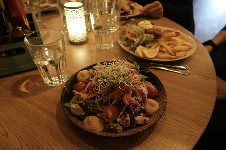 Le lendemain midi nous avons avalé une salade sur le pouce, toujours au bar du Funken Lodge. Je ne vous recommande pas ce plat de la carte du bar.