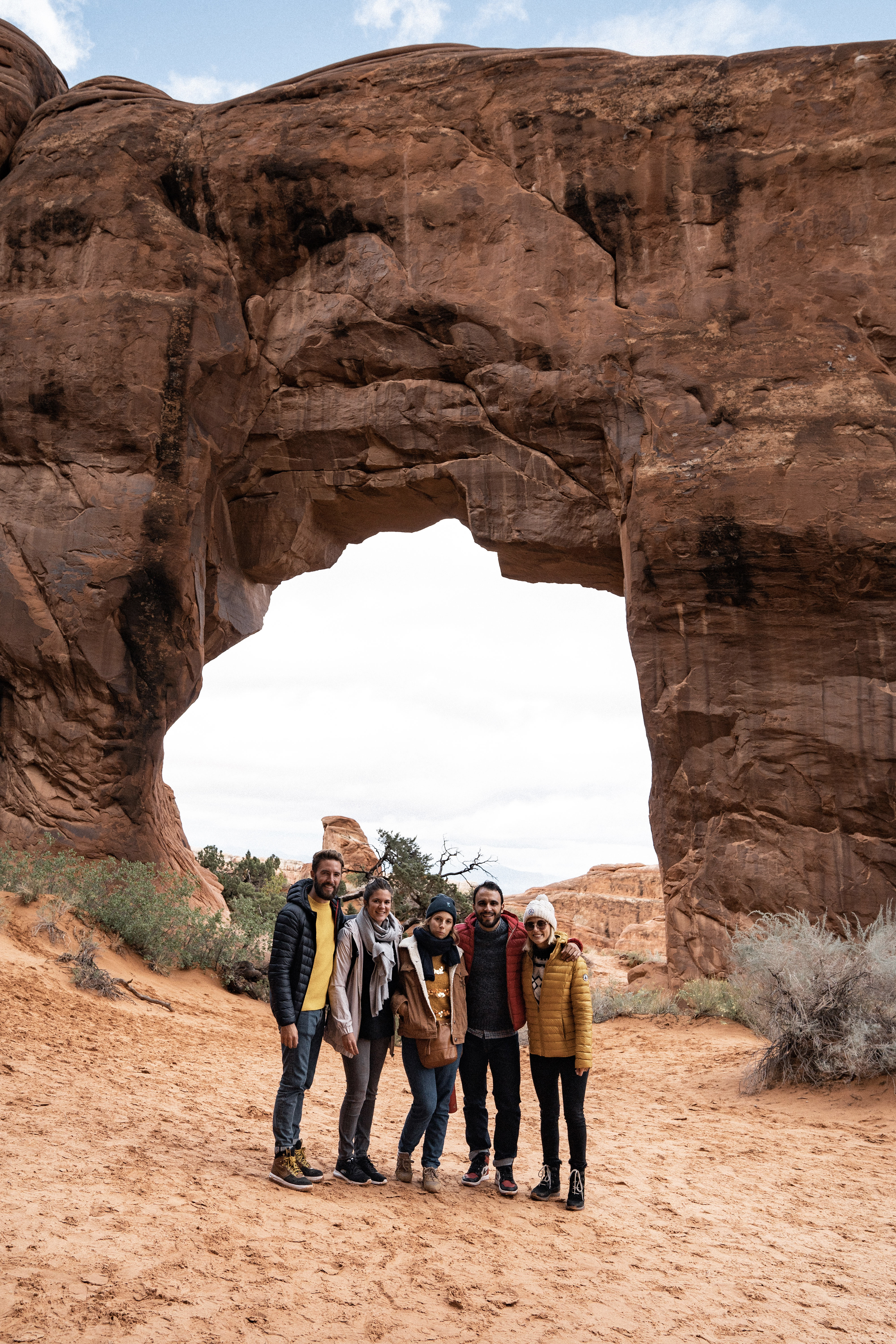 Après cette petite pause nous avions rendez-vous avec Moab Adventure Center à nouveau. Cette fois, un guide génial nous a fait découvrir les arches en van. Il nous conduit de point de vue en point de vue, avec parfois un peu de marche pour accéder à des arches naturelles. Nous sommes restés dans le parc jusqu’à 19h, la lumière du coucher de soleil faisait briller les roches…