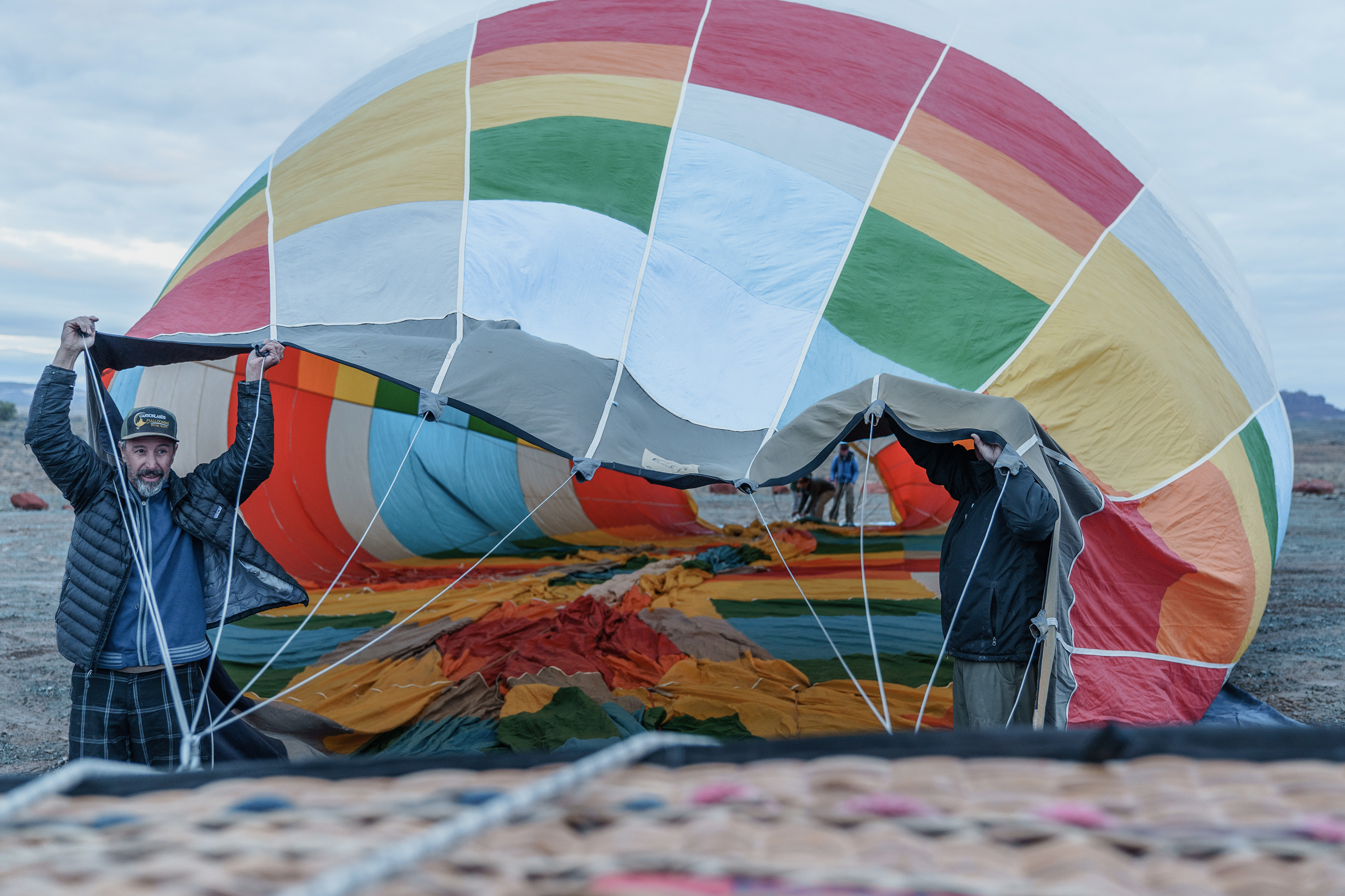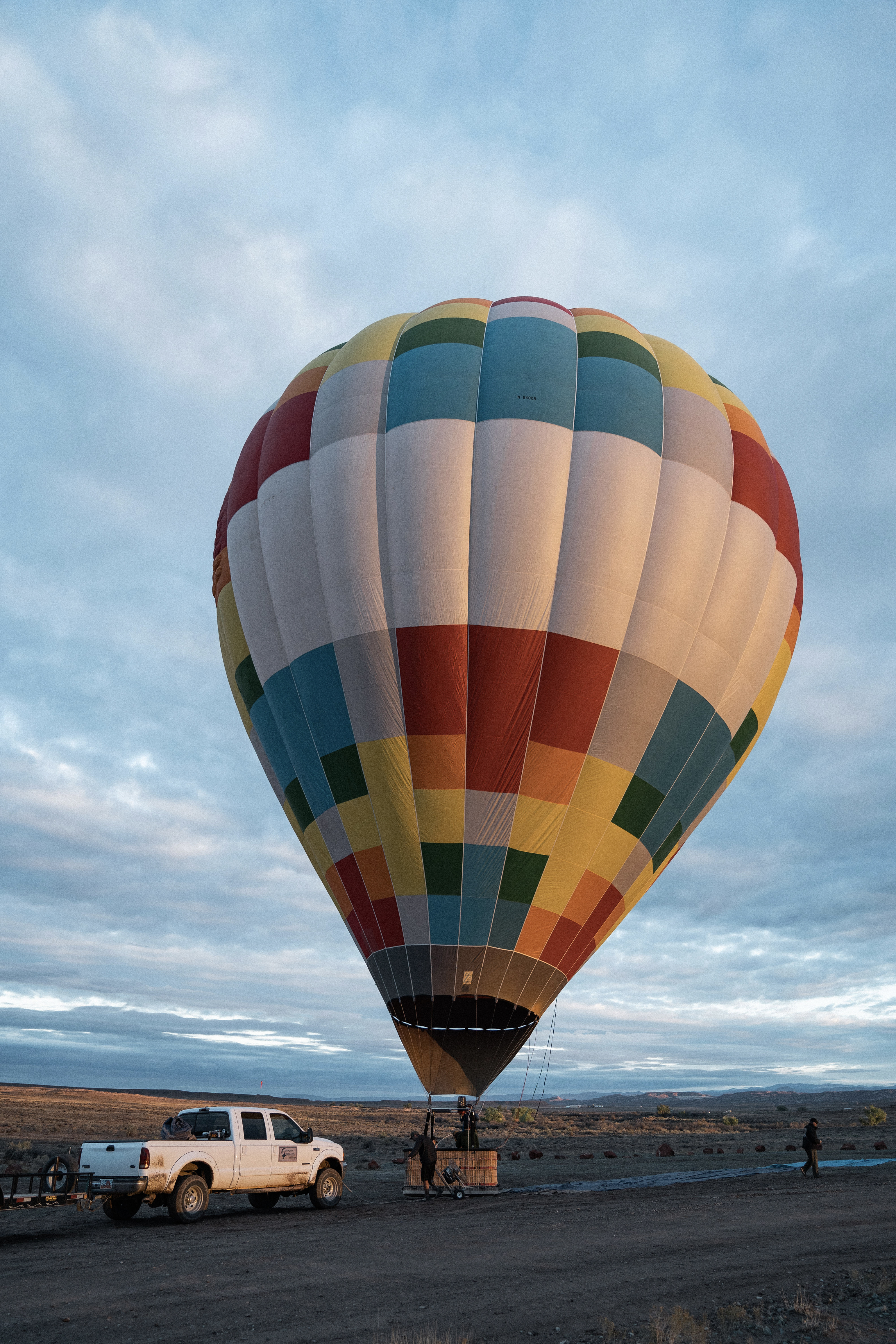 Réveil aux aurores le lendemain pour réaliser un de mes rêves… faire de la montgolfière. Quand nous avons construit le séjour avec Évasions USA, ils savaient que Nico rêvait de conduire dans des endroits improbables et moi de faire de la montgolfière. J’avais soufflé cette idée sans trop y croire. Mais ils l’ont fait !