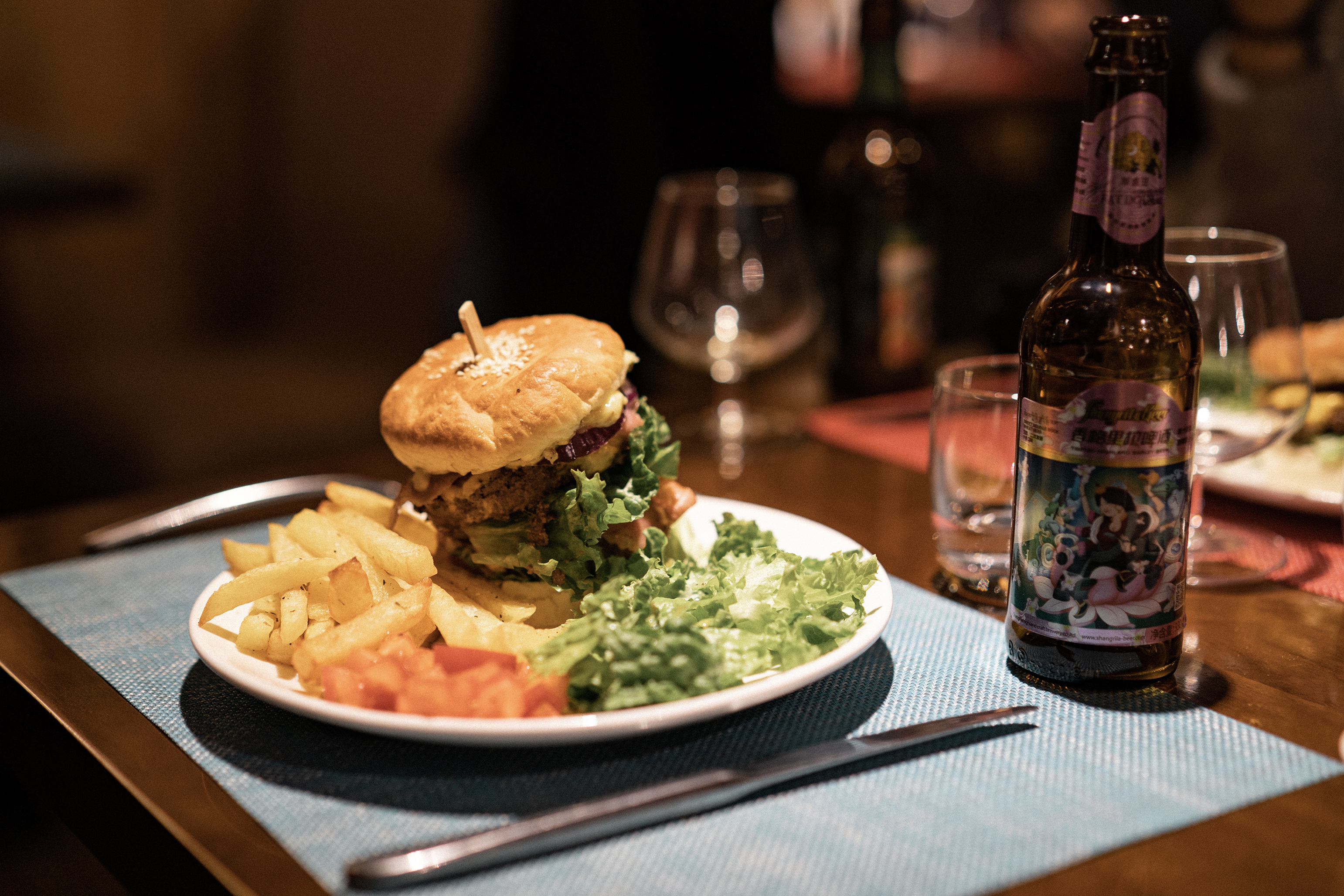 J’ai testé le burger de yack, avec un verre de vin rouge toulousain, un délice. La viande ressemble à du bœuf avec un peu plus de goût.