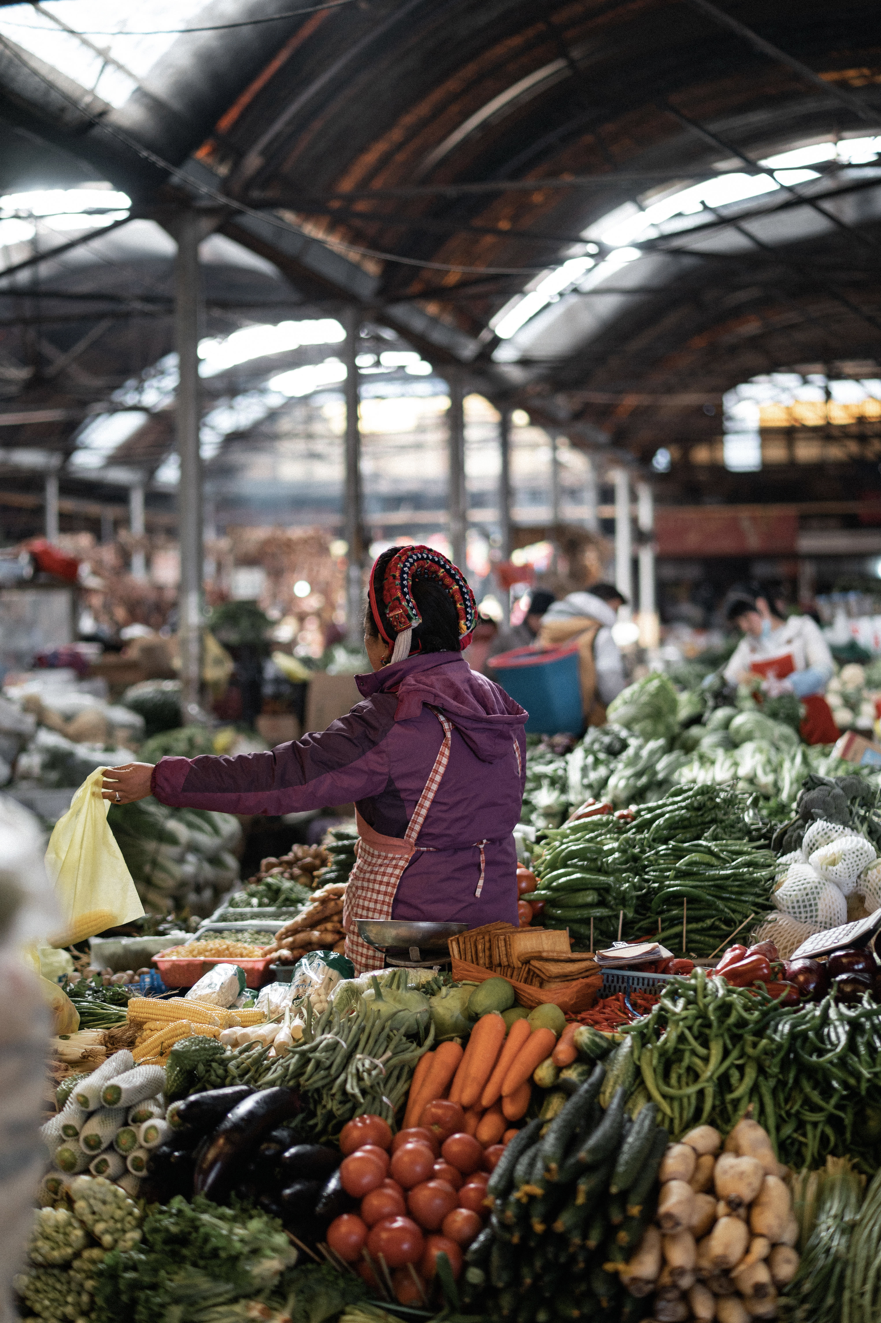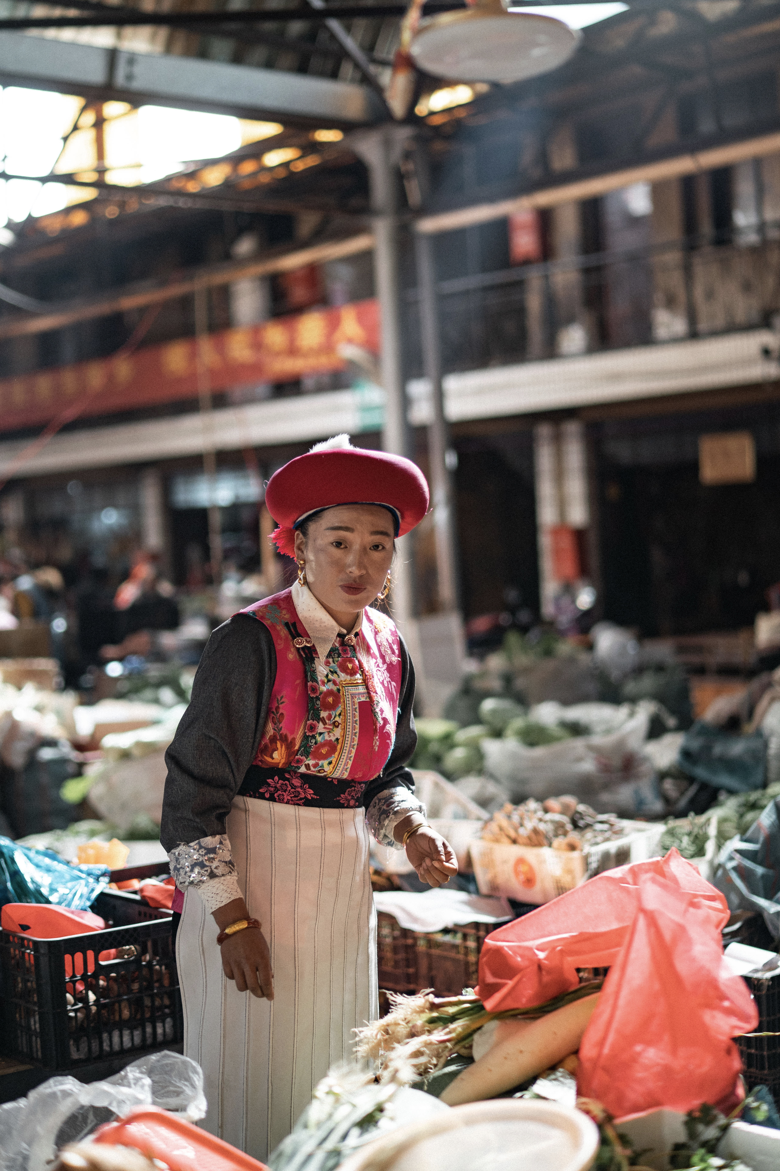 Le lieu est animé mais la partie viandes est vraiment difficile à traverser, je vous passe les détails. Le plus chouette est de voir les tibétaines porter la coiffe et l’habit traditionnel pour vendre ou acheter des légumes.