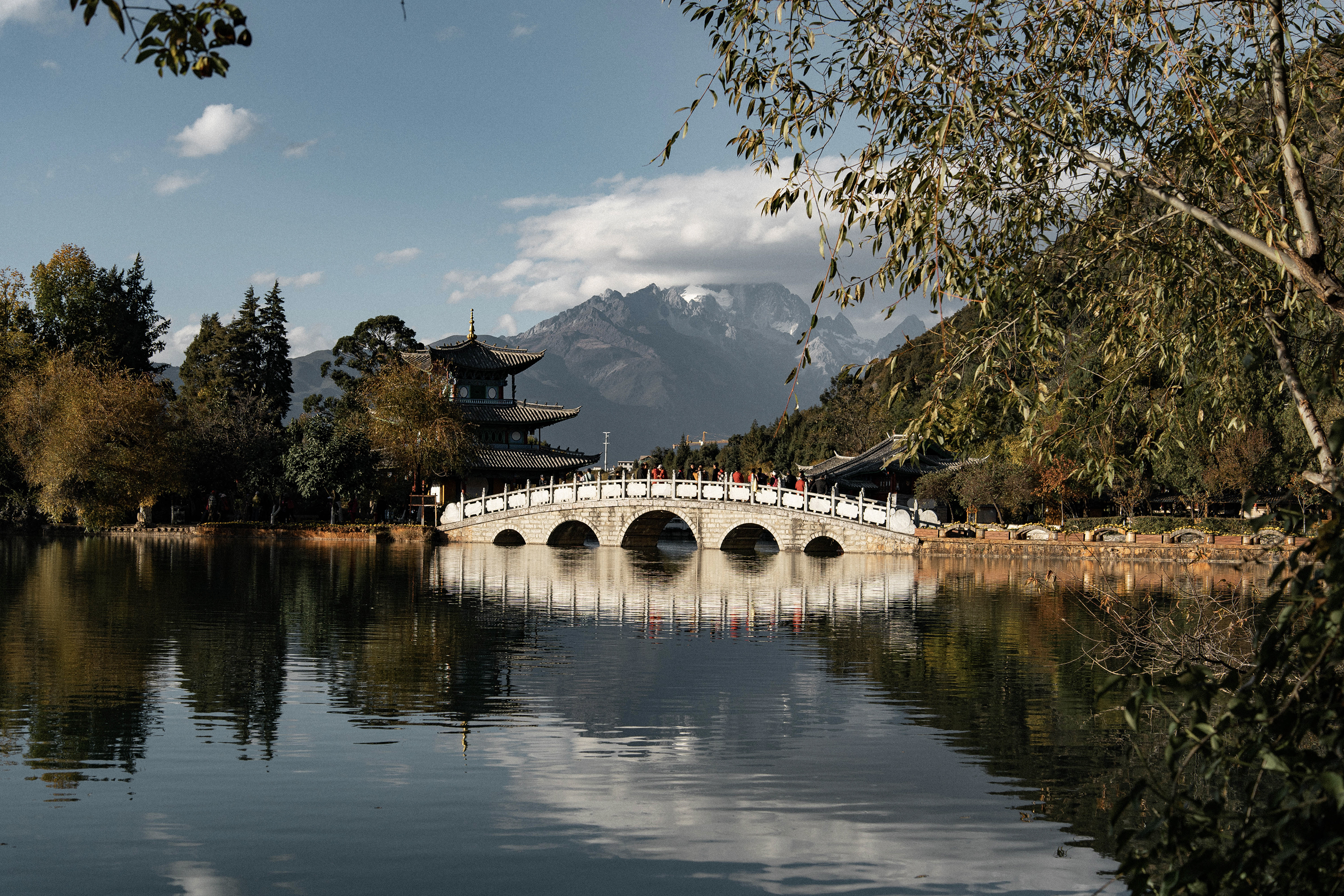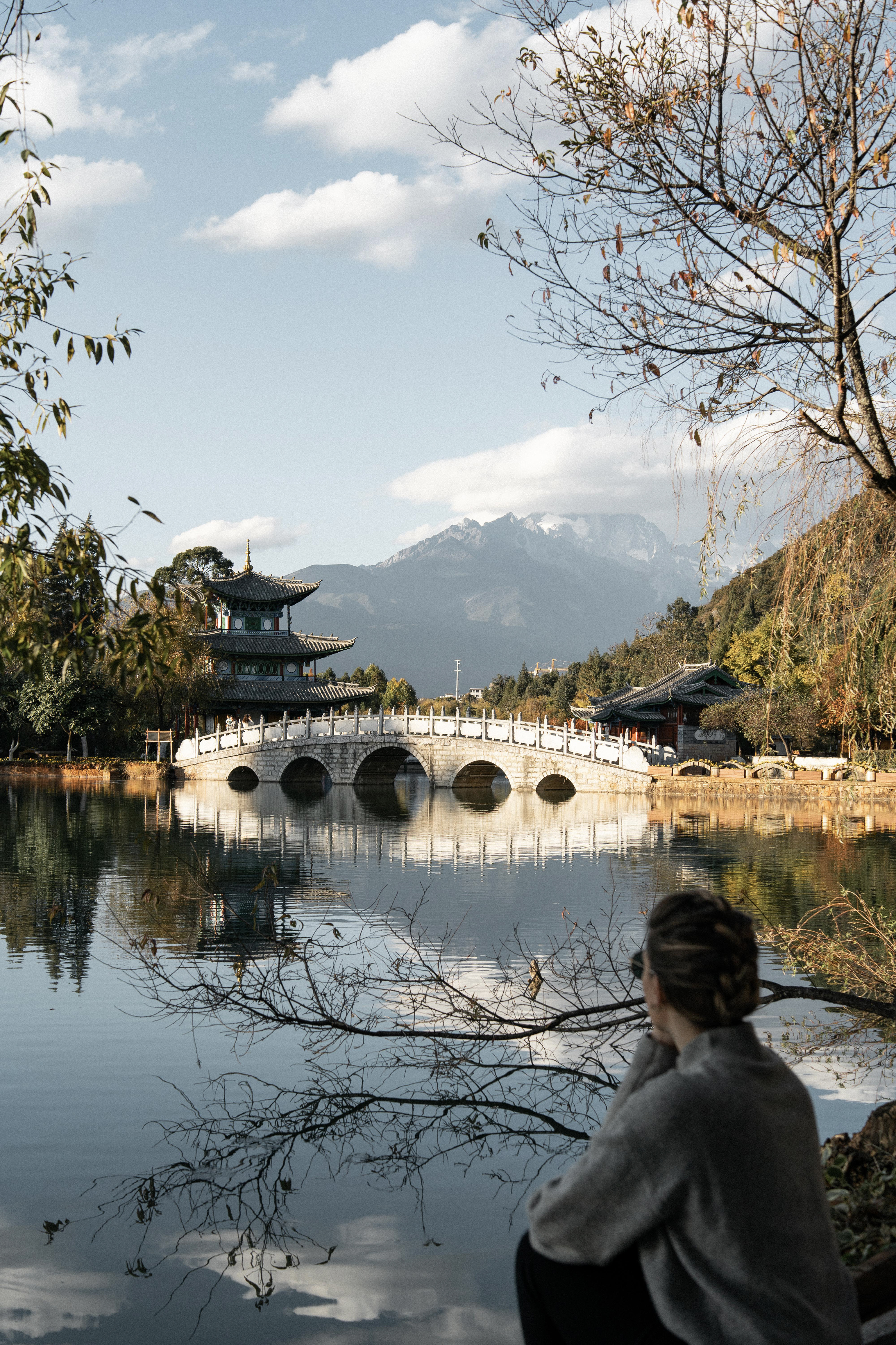 Après un dernier déjeuner à Shangri La direction Lijiang. Avant de rejoindre l’hôtel nous avons visité le parc de l’étang du dragon noir. Une balade dans des jardins autour d’un étang et ses ponts. Nous avons attendu le coucher du soleil, il n’y avait plus personne dans le jardin et les couleurs étaient superbes.