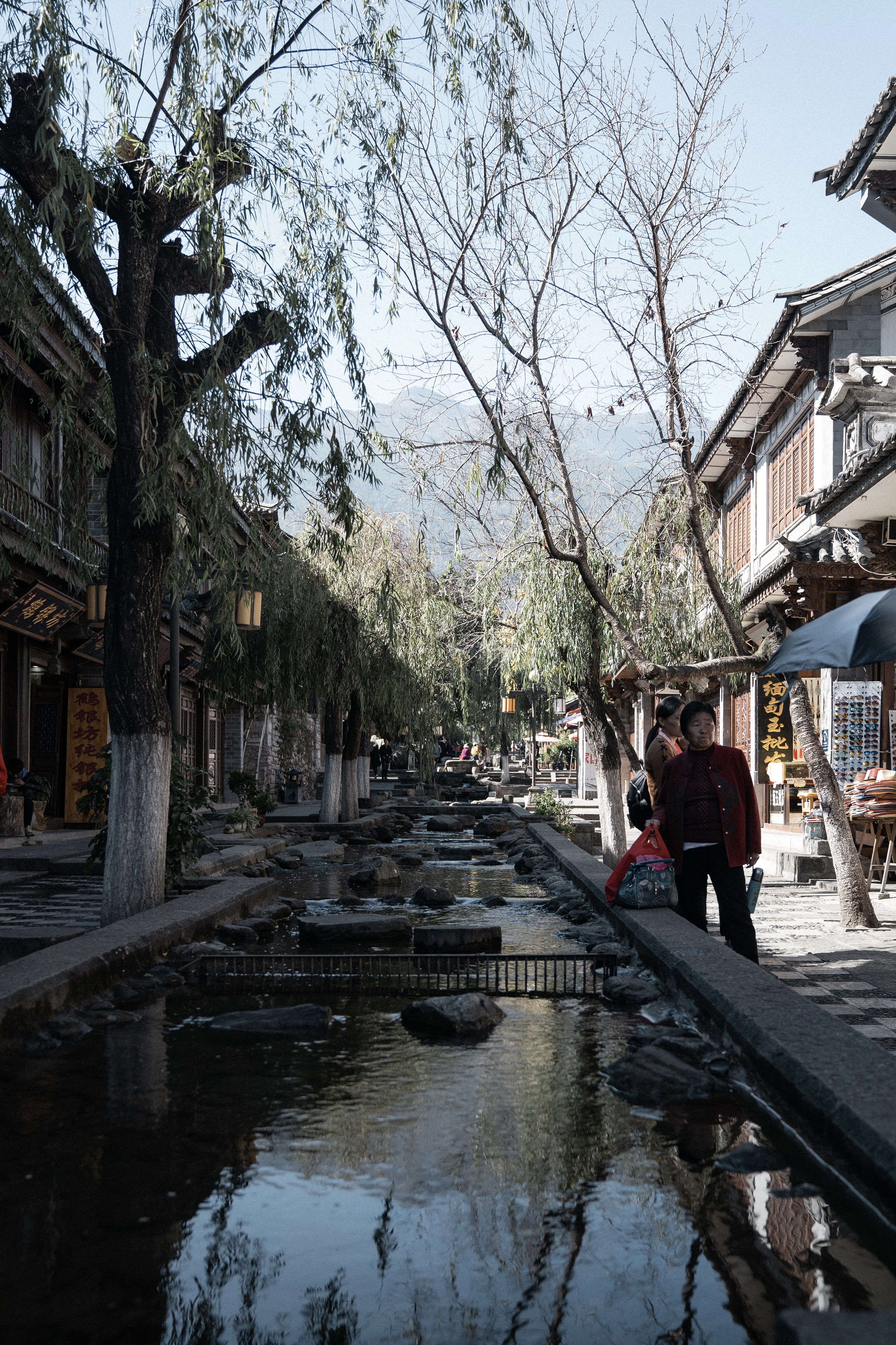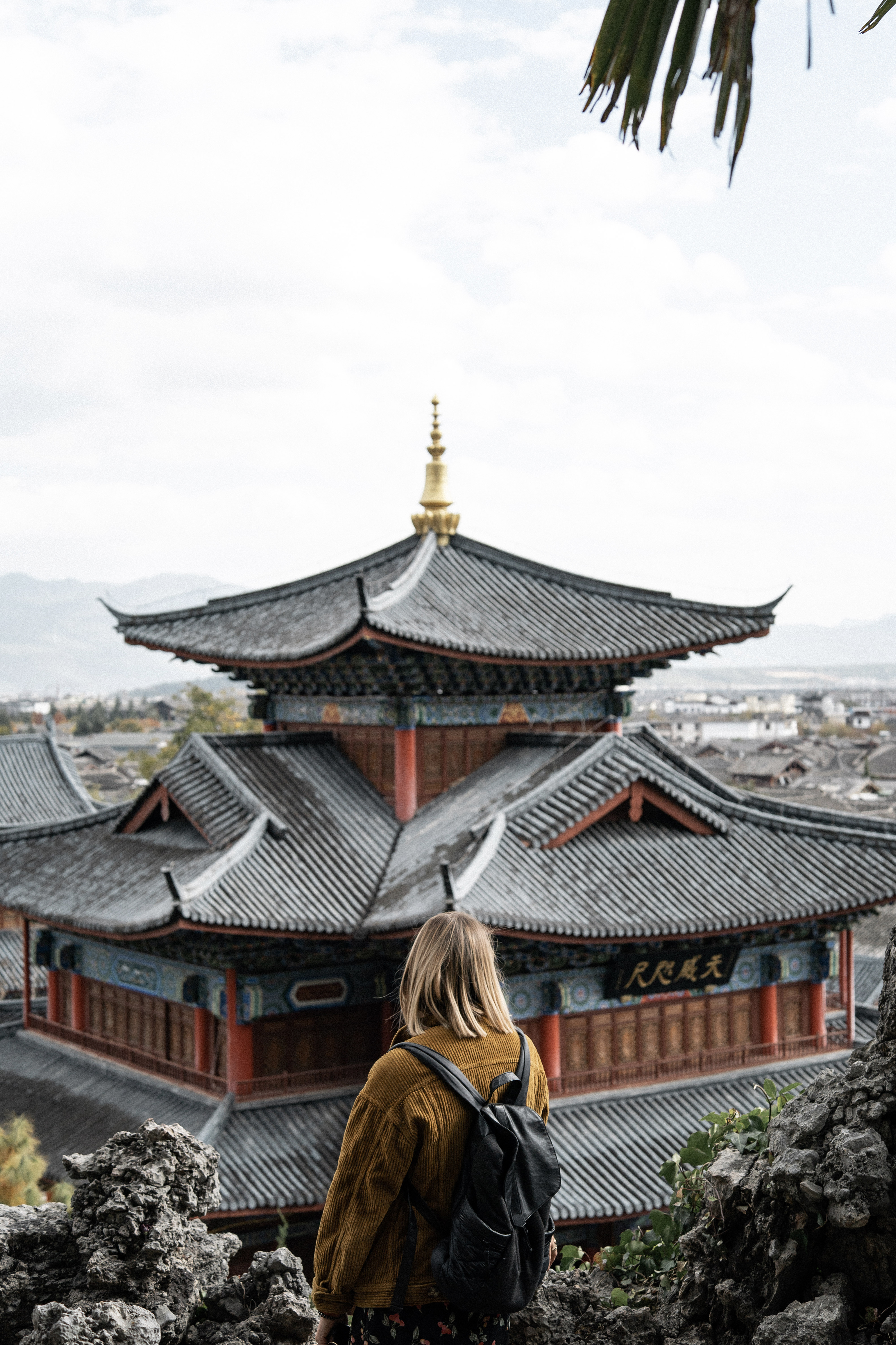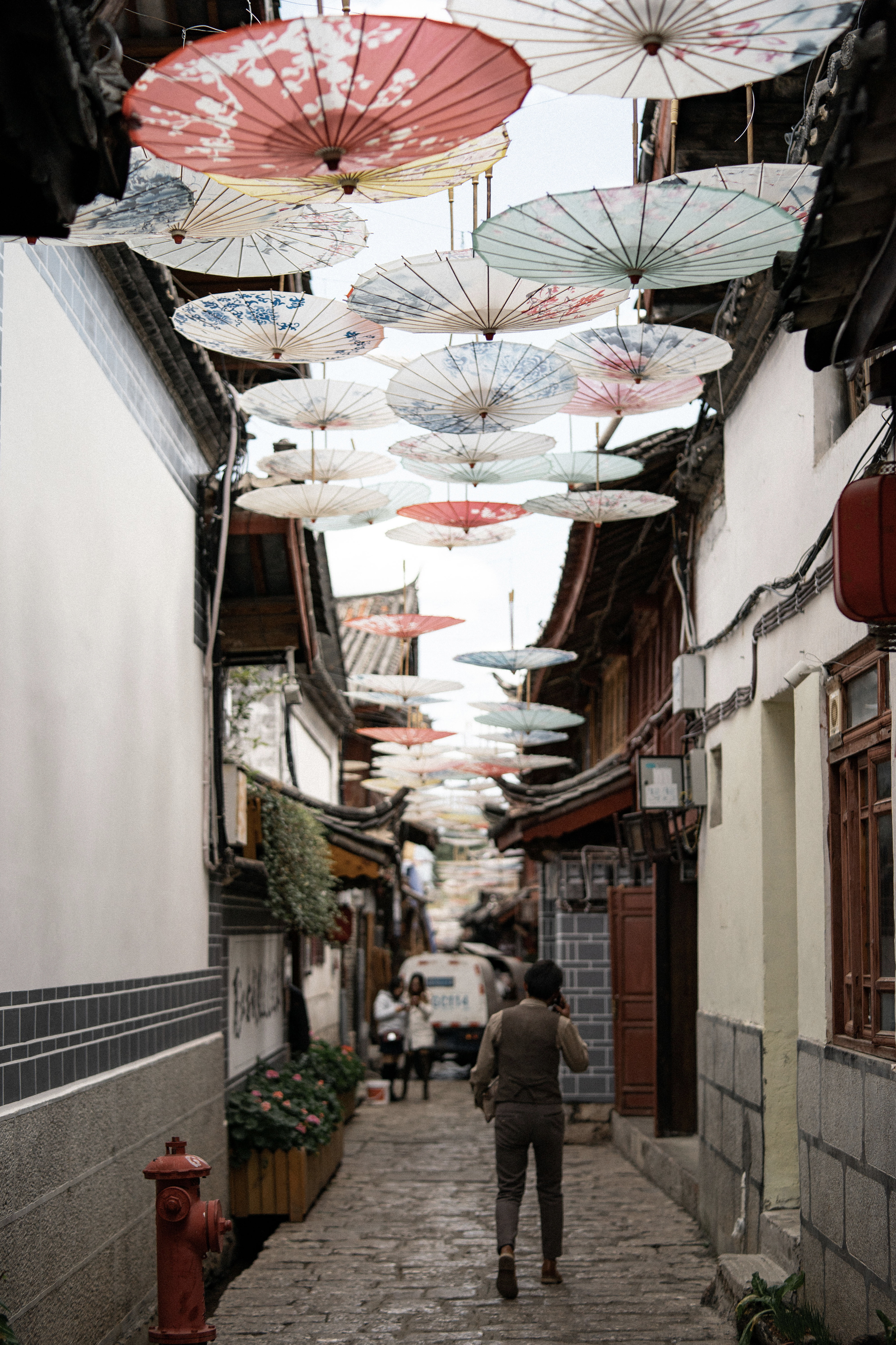 La veille partie de la ville de Lijiang est classée au patrimoine mondiale de l’Unesco. Les rues piétonnes les plus connues sont très mignonnes mais ne proposent QUE des boutiques ouvertes pour les touristes : thés, écharpes, bijoux, street food… nous avons préféré explorer les rues perpendiculaires et prendre de la hauteur. Nous avons croisé bien moins de monde, pas de boutiques, beaucoup d’auberges et des terrasses avec des vues panoramiques sur les toits de la ville.