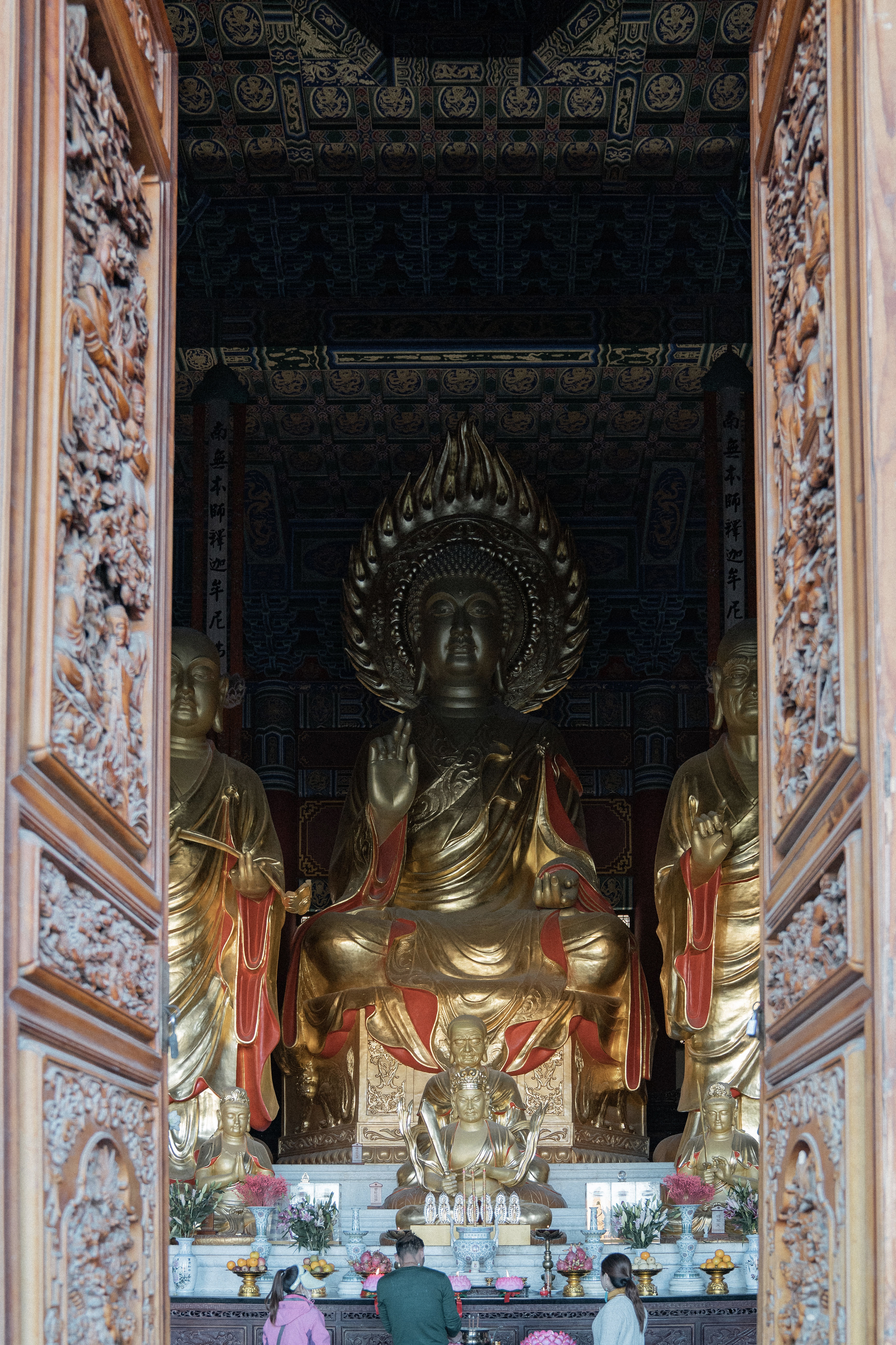 Avant le couché du soleil nous sommes montées découvrir Da Gui Shang, le temple des 100 poulets.
