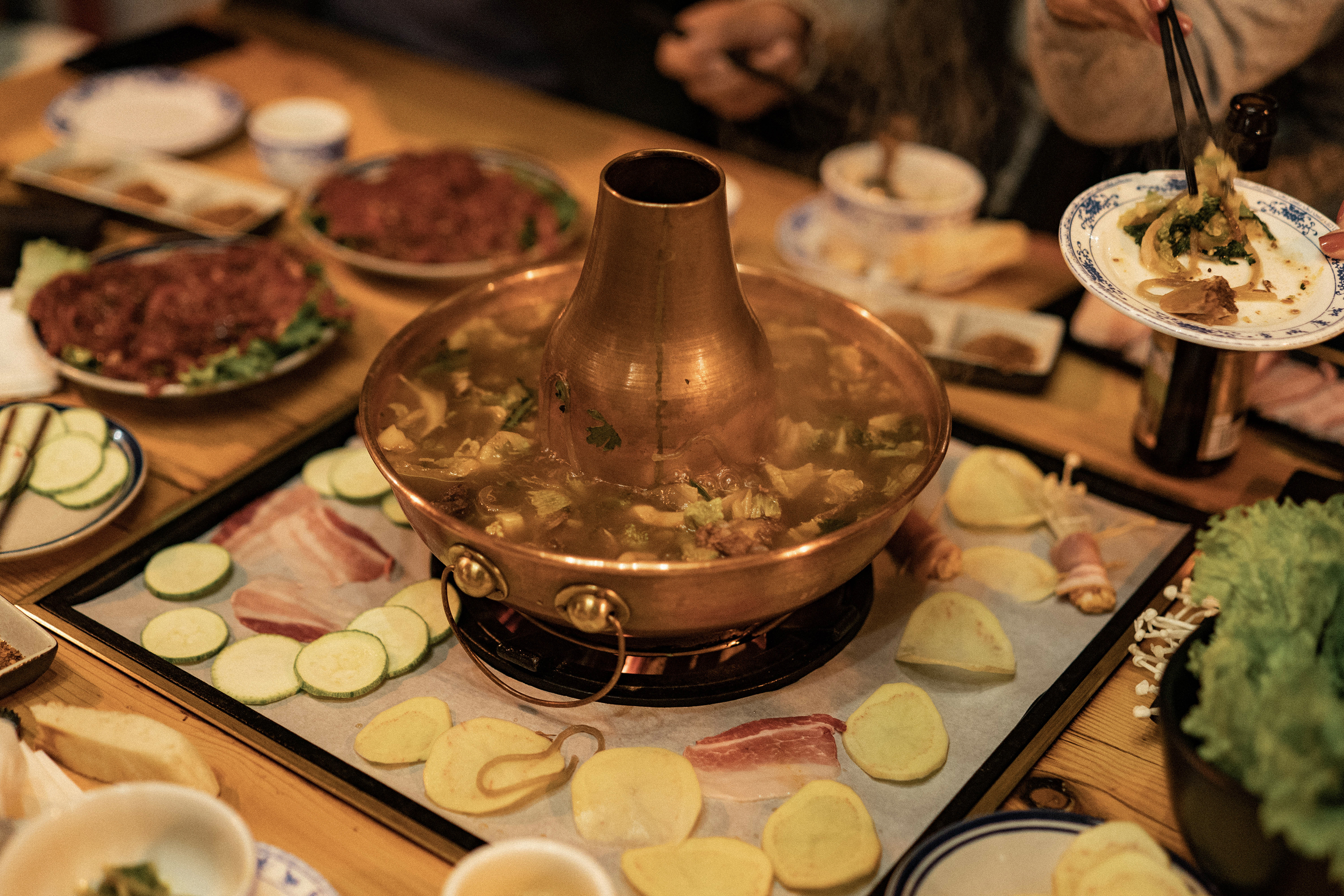 Pour le dîner nous avions réservé au restaurant de l’hôtel un hot pot ! Une grand bol de bouillon fumant avec de nombreux accompagnements à faire cuire soi-même directement à l’intérieur. Légumes, tofu, poissons, viandes, salades, soja, cacahouètes… délicieux !