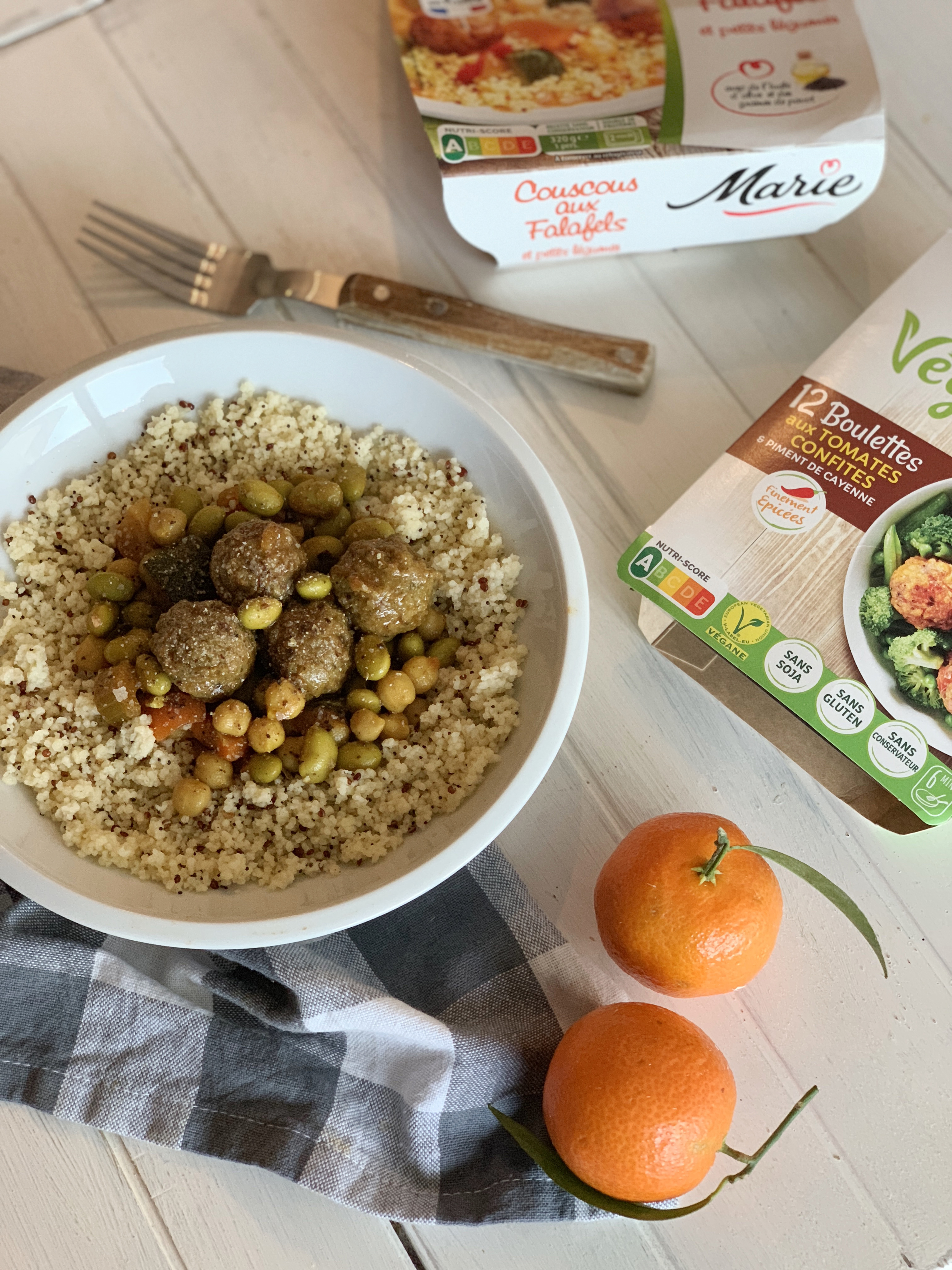 Dans mon esprit ils étaient tous trop sucrés, trop salés, trop gras… et pourtant de nombreux plats cuisinés affichent fièrement une bonne note. Ça ne veut pas dire qu’on se nourrir uniquement de ce type de plats et qu’ils sont irréprochables mais si vous avez besoin de manger sur le pouce (et ça de temps en temps) et bien par exemple ce couscous aux falafels est une bonne alternative.