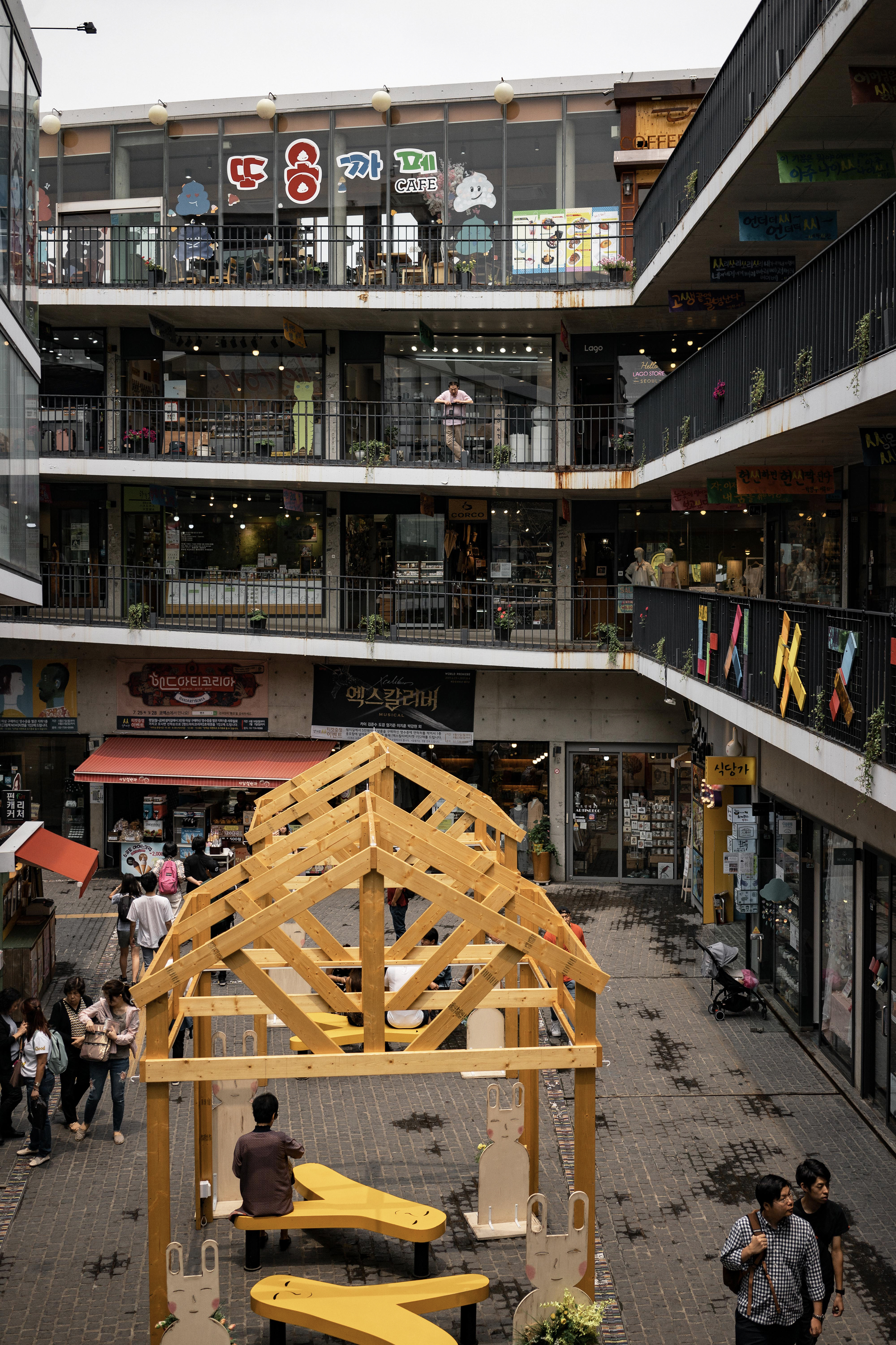 C’est ici qu’on a aperçu le Ddong café (comprenez poop café) ahahah. C’était amusant de passer devant mais nous n’avons pas testé. Par contre le petit centre commercial dans lequel il se trouve est génial. Beaucoup de créateurs et artistes !