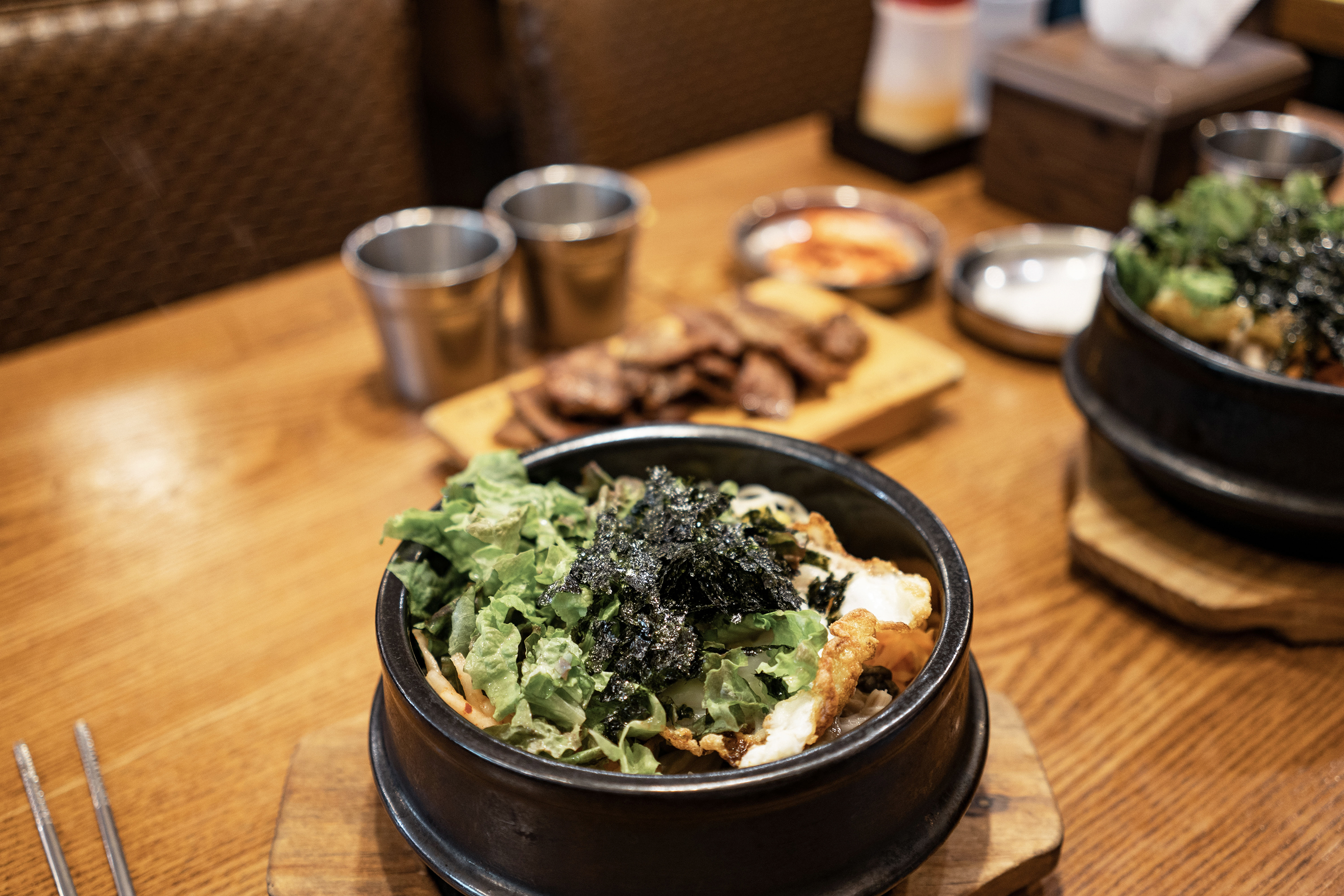 Pas évident de partager des bonnes adresses de restaurants en Corée. Très souvent ils ont seulement un nom écrit en coréen. Ici, une petite adresse très typique, avec les plats en photos ! On a commandé un bibimbap qui nous a coûté 5€. C’était délicieux et le service était très attentionné.