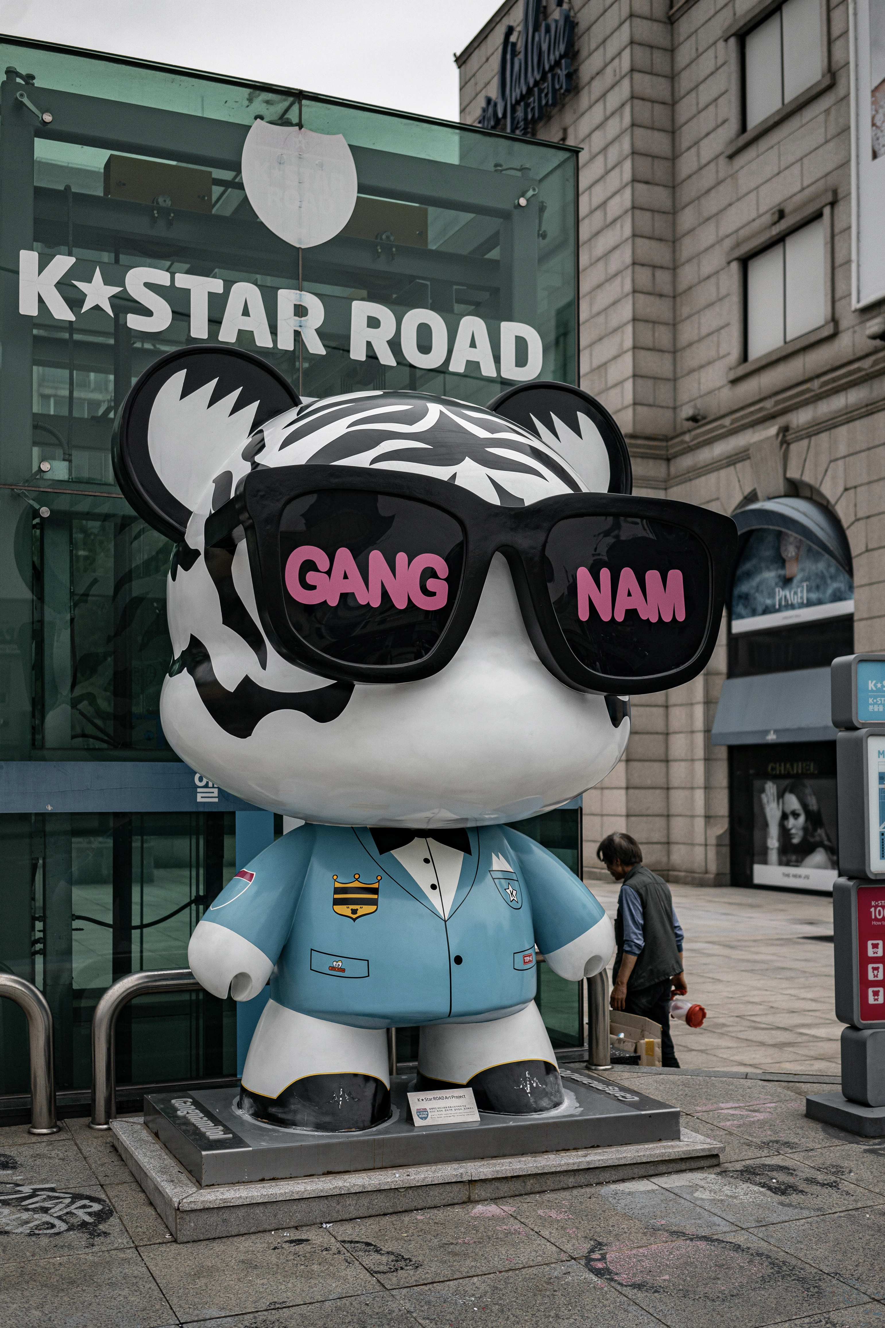 Le quartier de Gangnam est immense. Nous avons longé la k-road mais je n’y ai pas trouvé grand intérêt. Beaucoup de boutiques de luxe et des statuts colorées représentant des artistes et groupes connus. C’est un peu leur walk of fame.