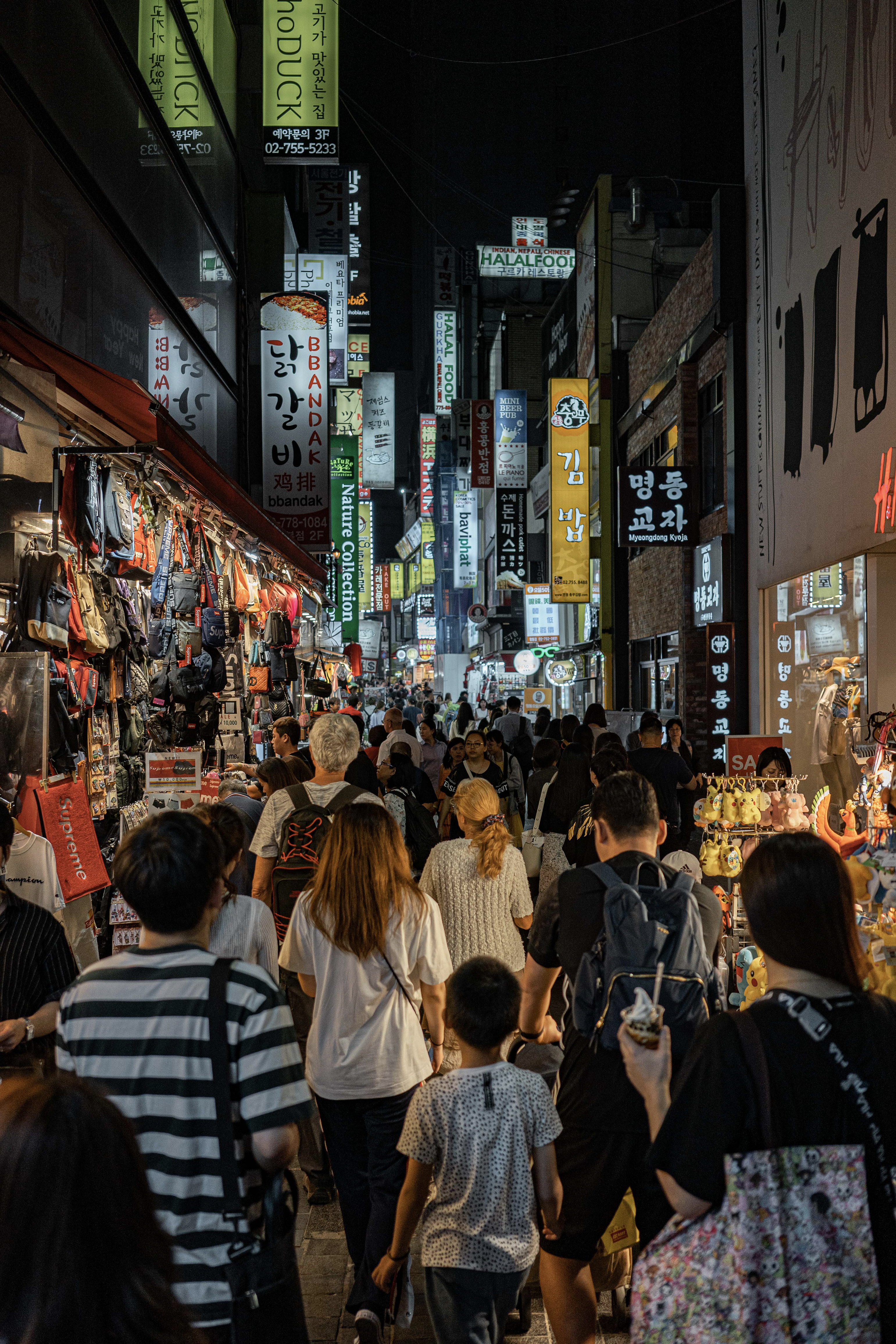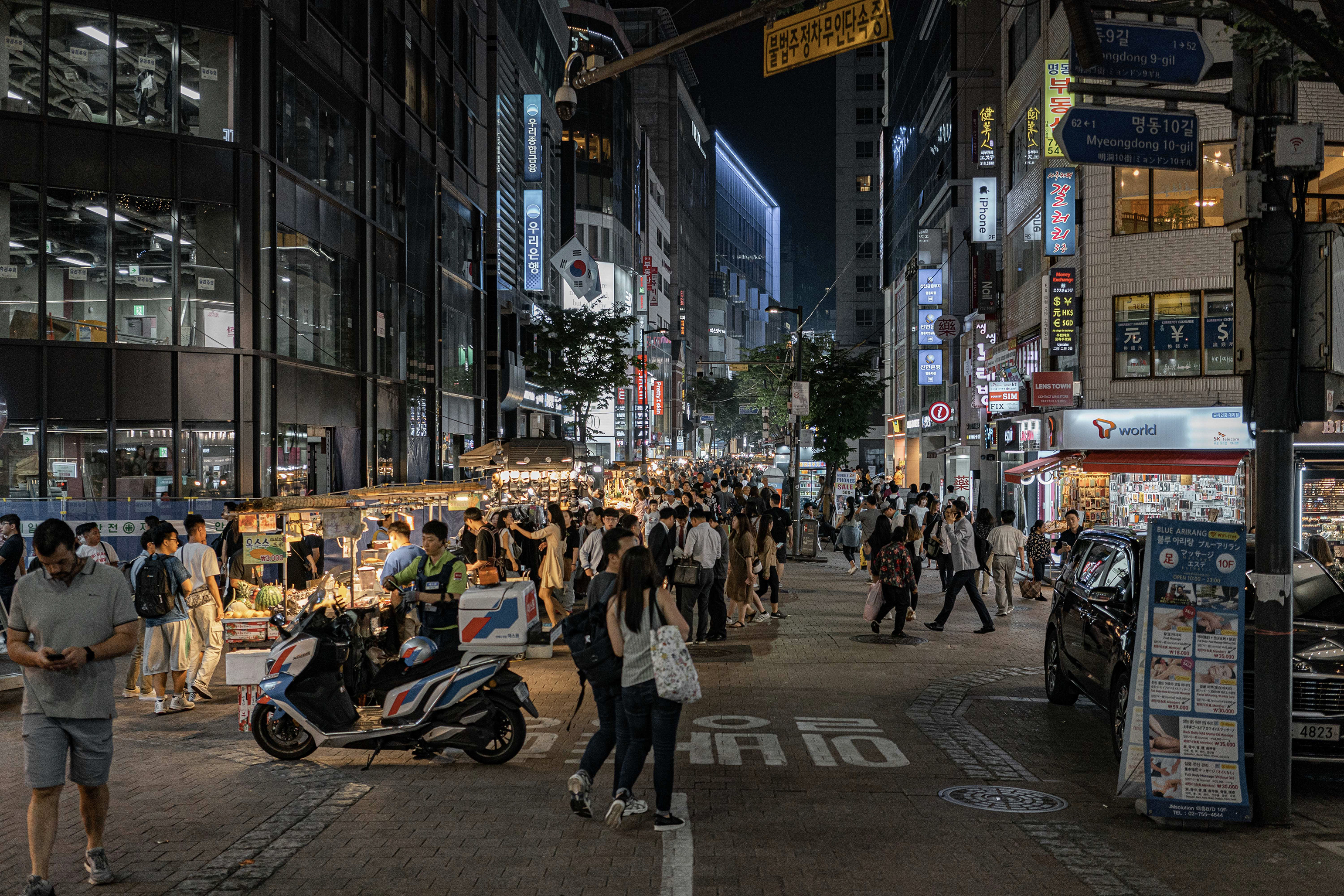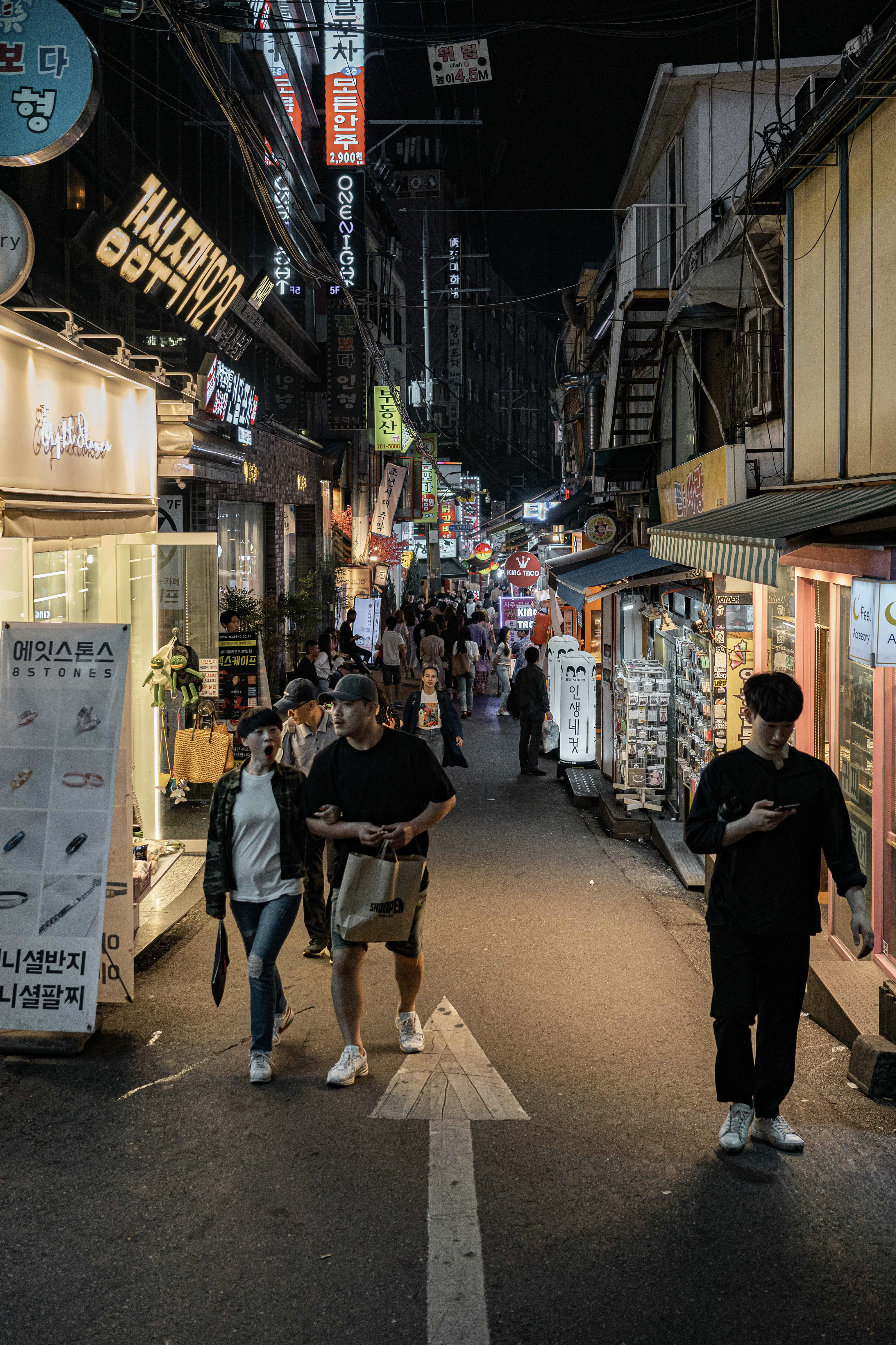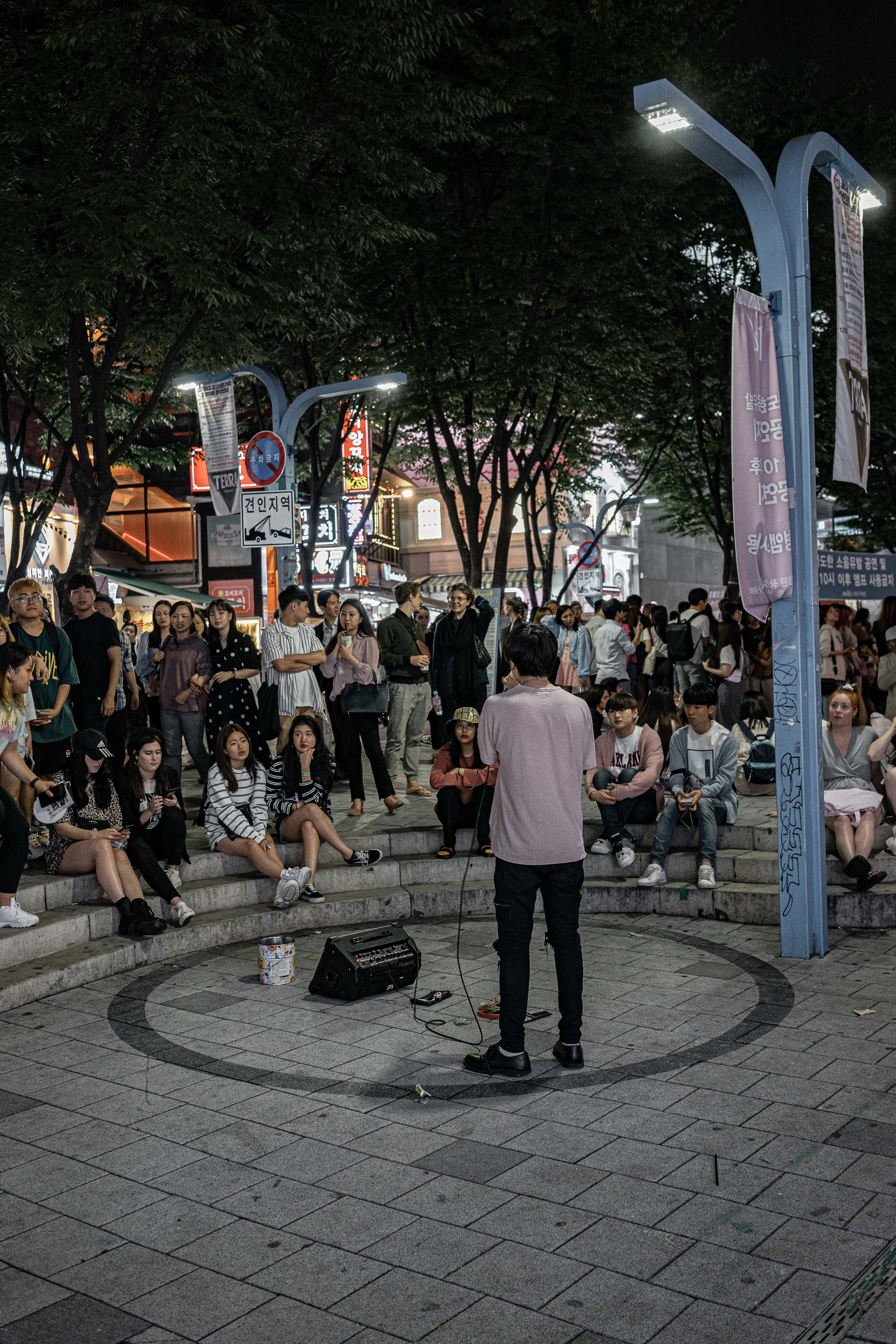 Ce quartier très animé est conseillé une fois la nuit tombée. En effet, néons partout, bars, musique, artistes dans la rue, k-pop... c’était vraiment chouette.