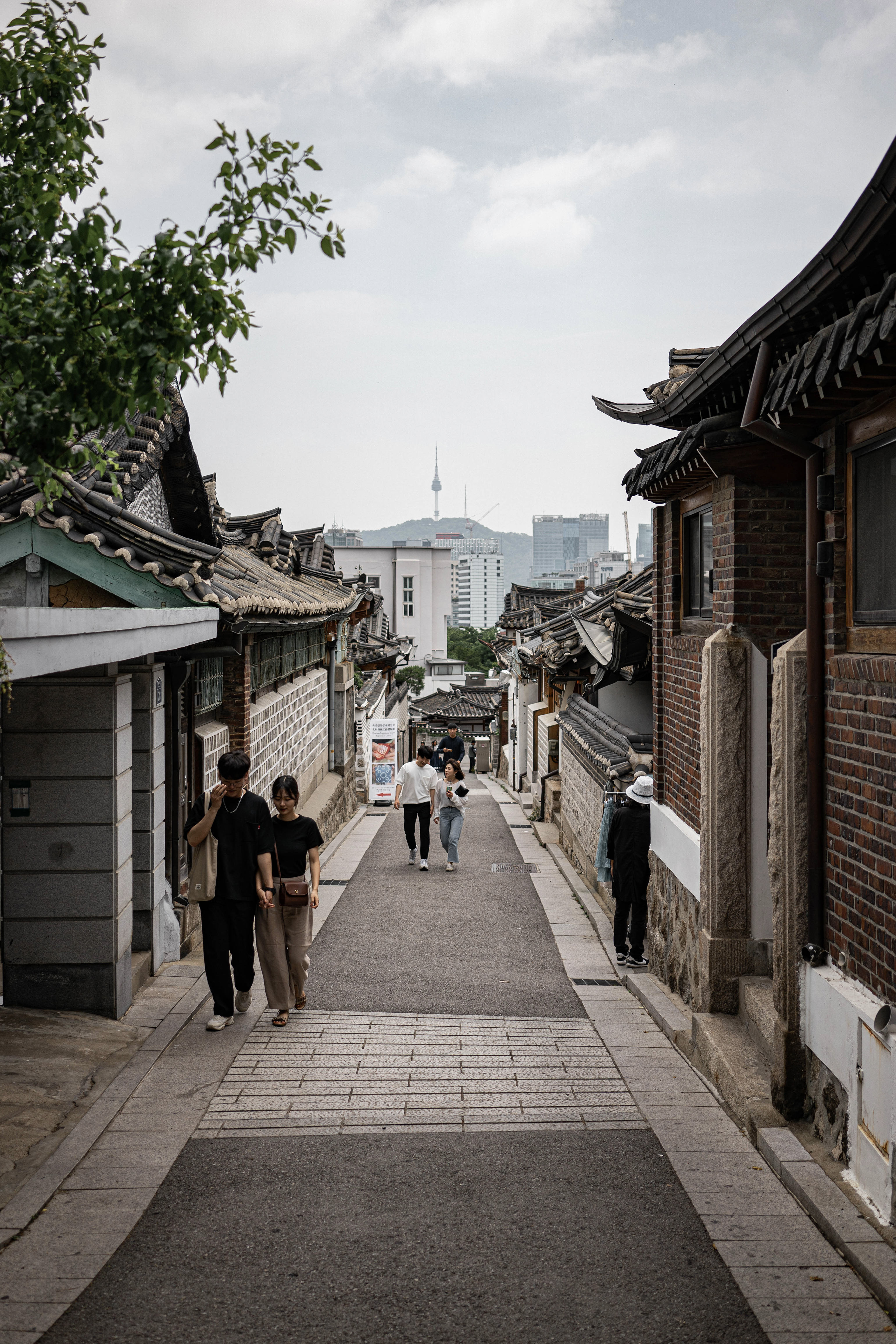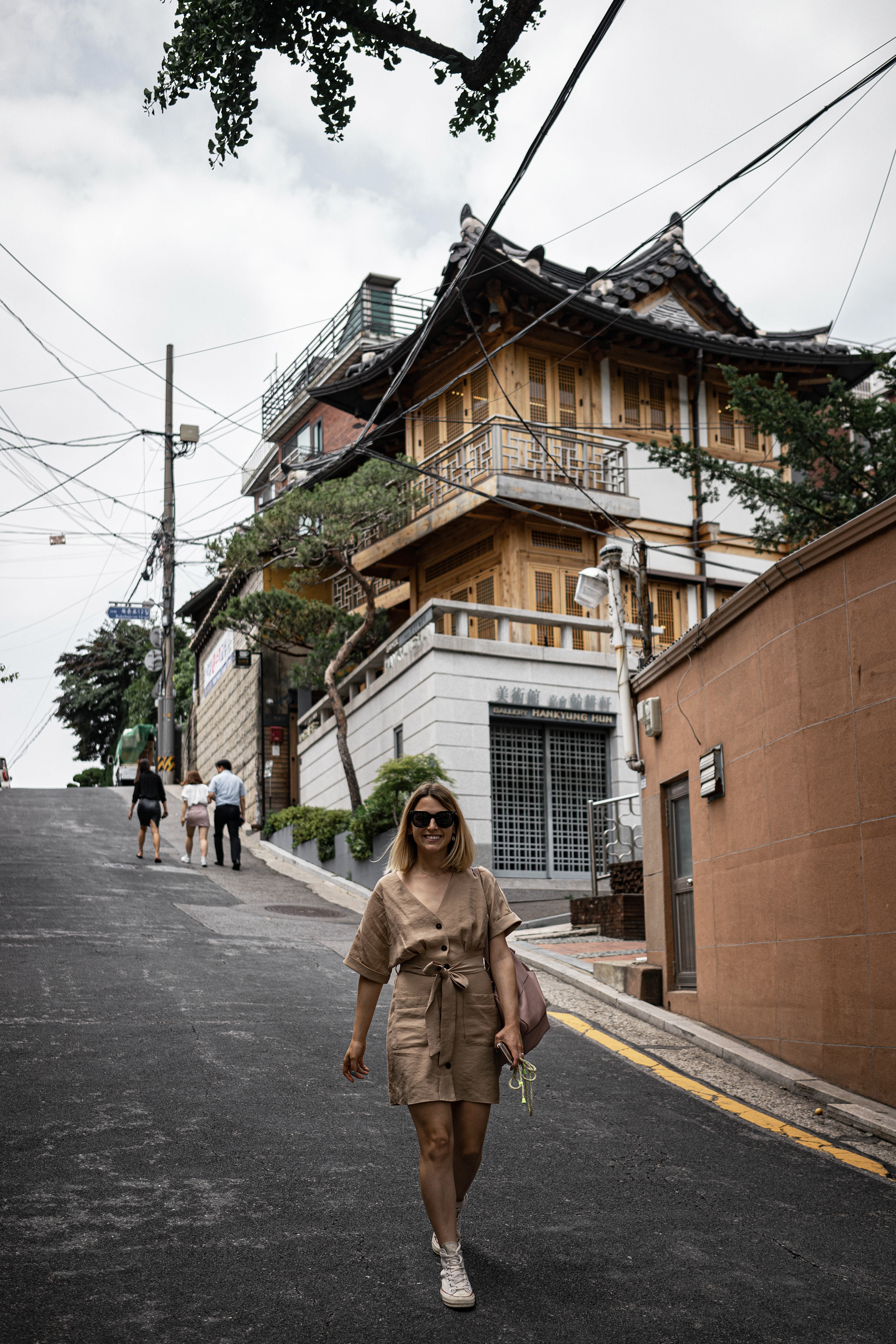 Hanok veut dire ancien. Bukchon, un quartier ancien, dans lequel il est possible de se balader. On y a découvert des architectures bien plus typiques et la vue sur Séoul et les toits de toutes ces maisons était magnifique.