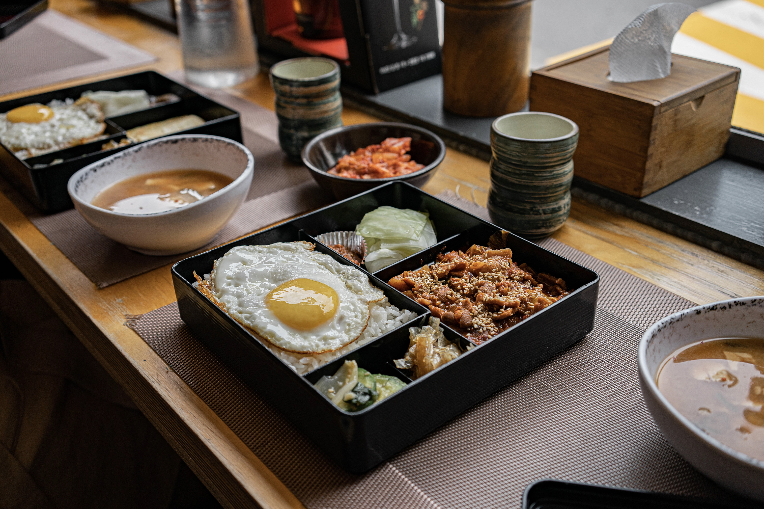 Nous avons commandé la « daily lunch box ». Un bento composé de viande épuisée, un œuf, du riz, des légumes, une soupe, du kimchi… c’était vraiment bon et très agréable de manger sur un bar ouvert sur la rue. Vous devez pensez que tous les plats sont les mêmes. La base est la même, et pourtant c’est différent à chaque fois.