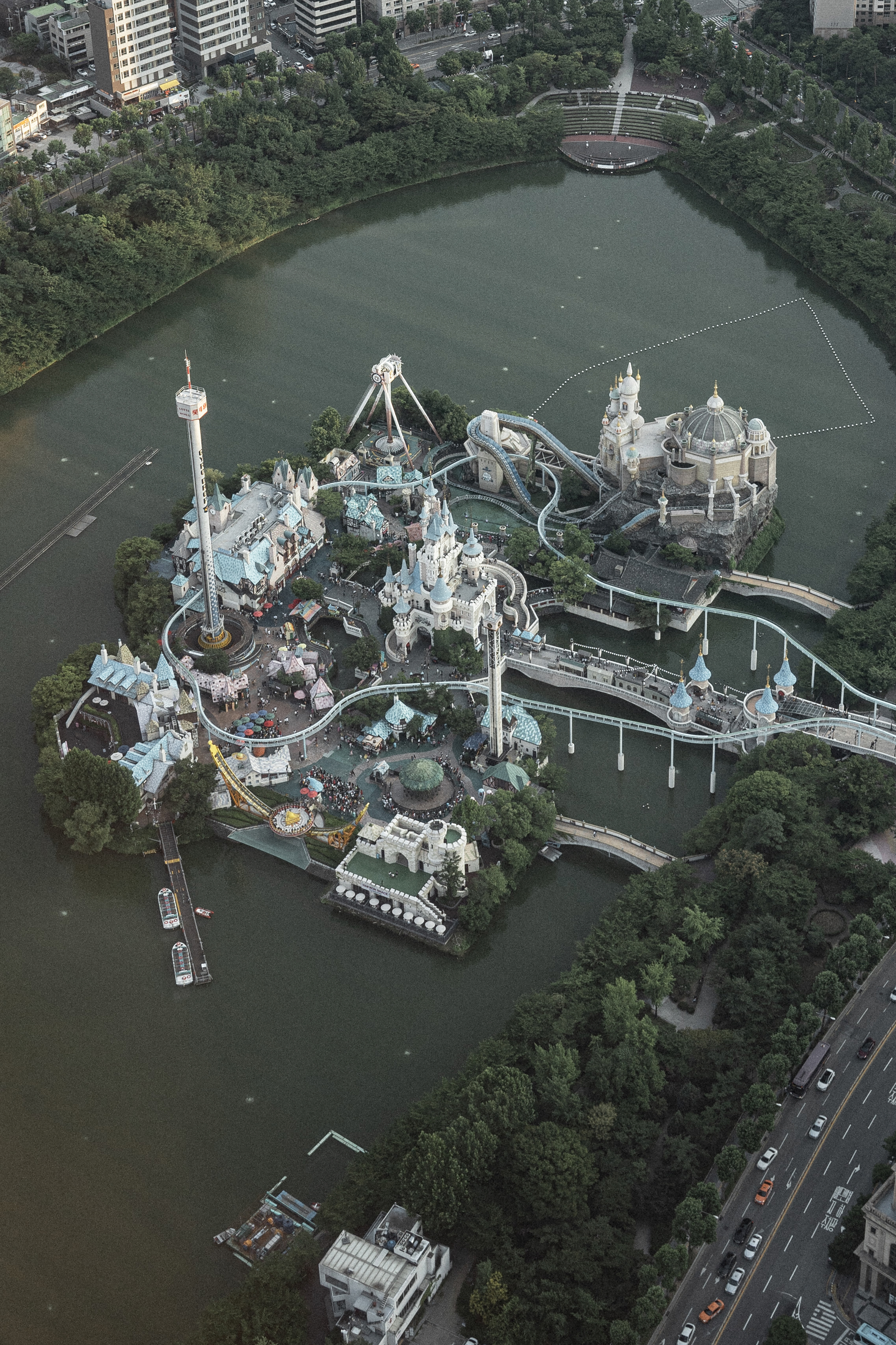 Au pied de la tour nous apercevions un parc d’attractions, celui de Lotte World Adventure.
