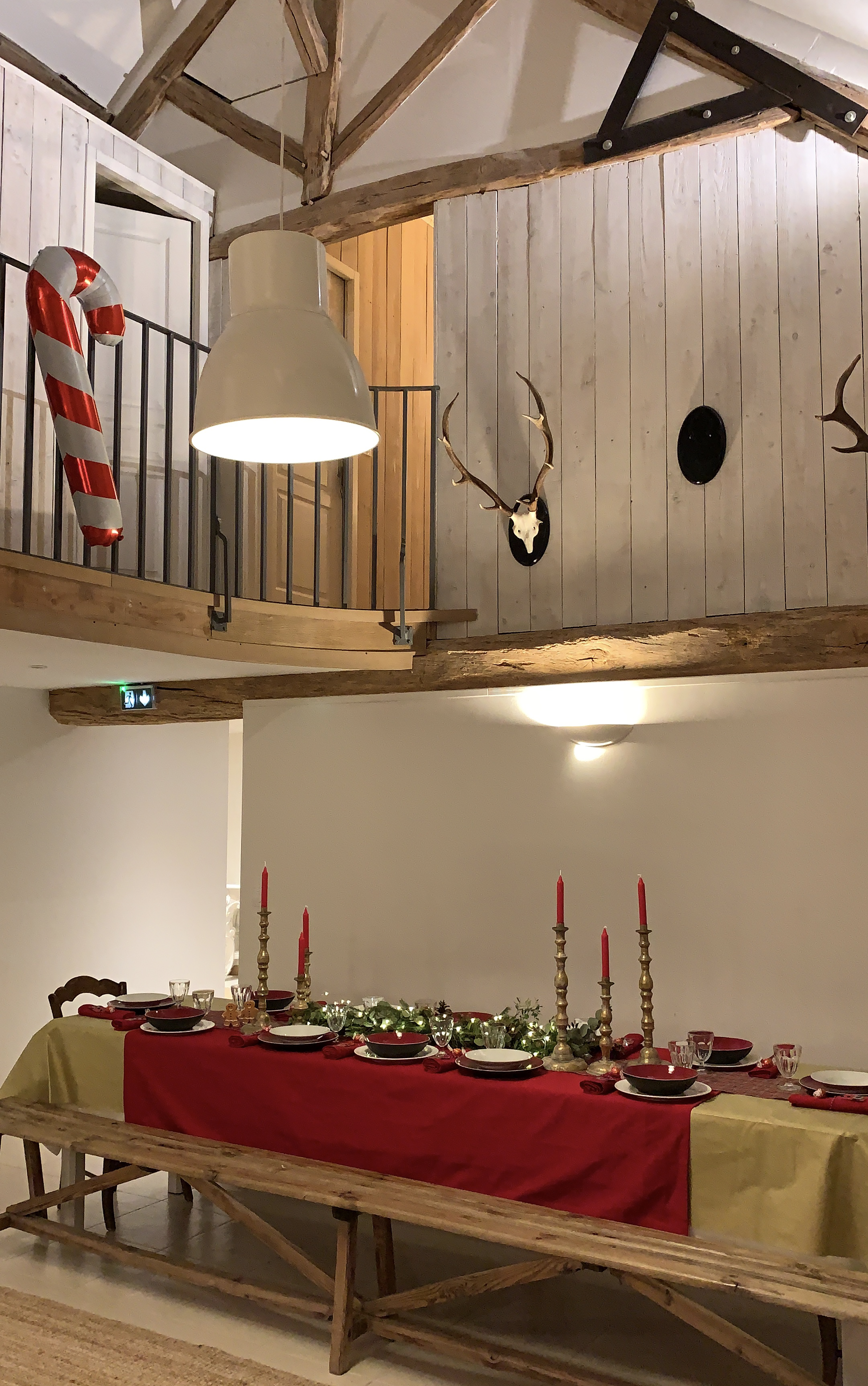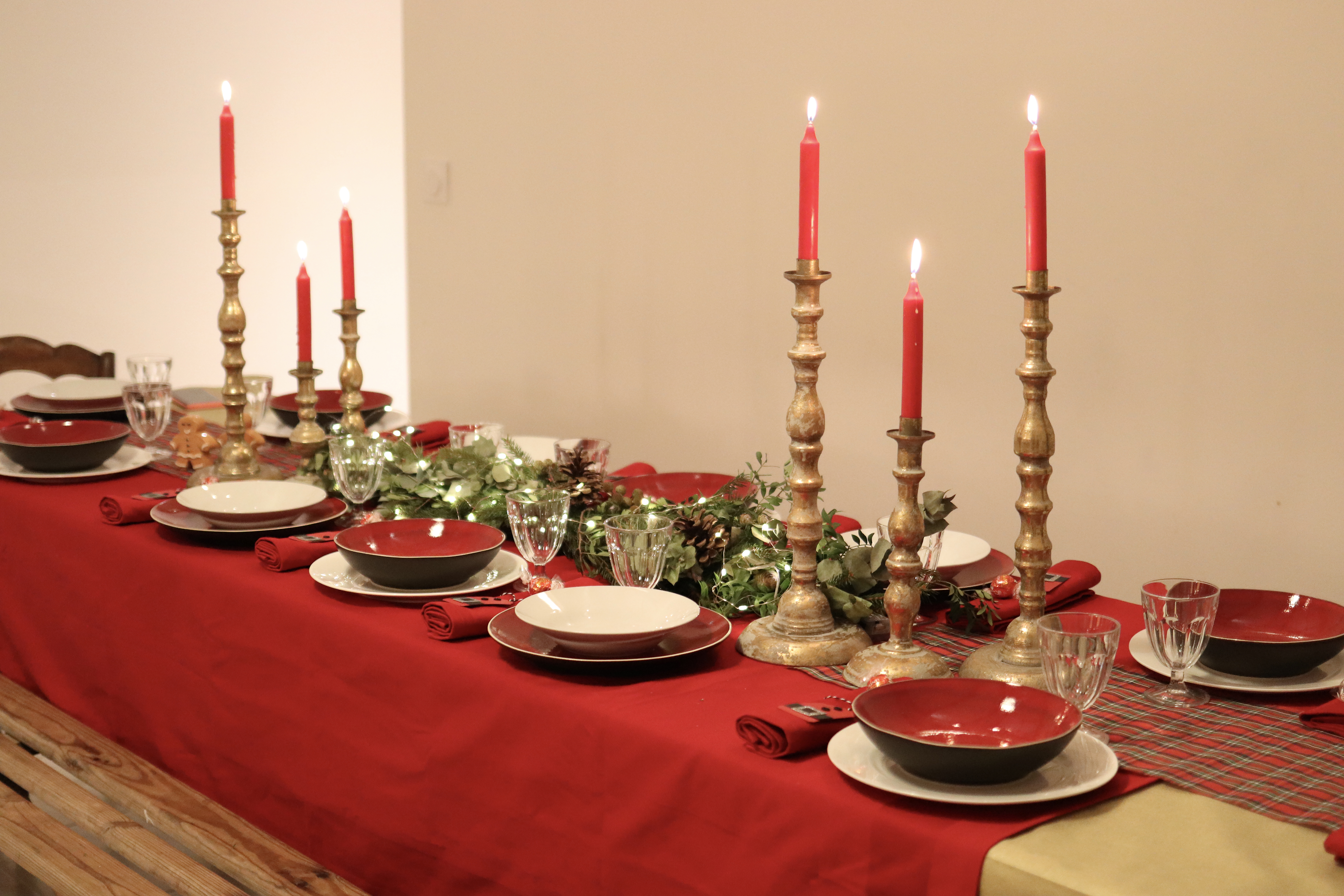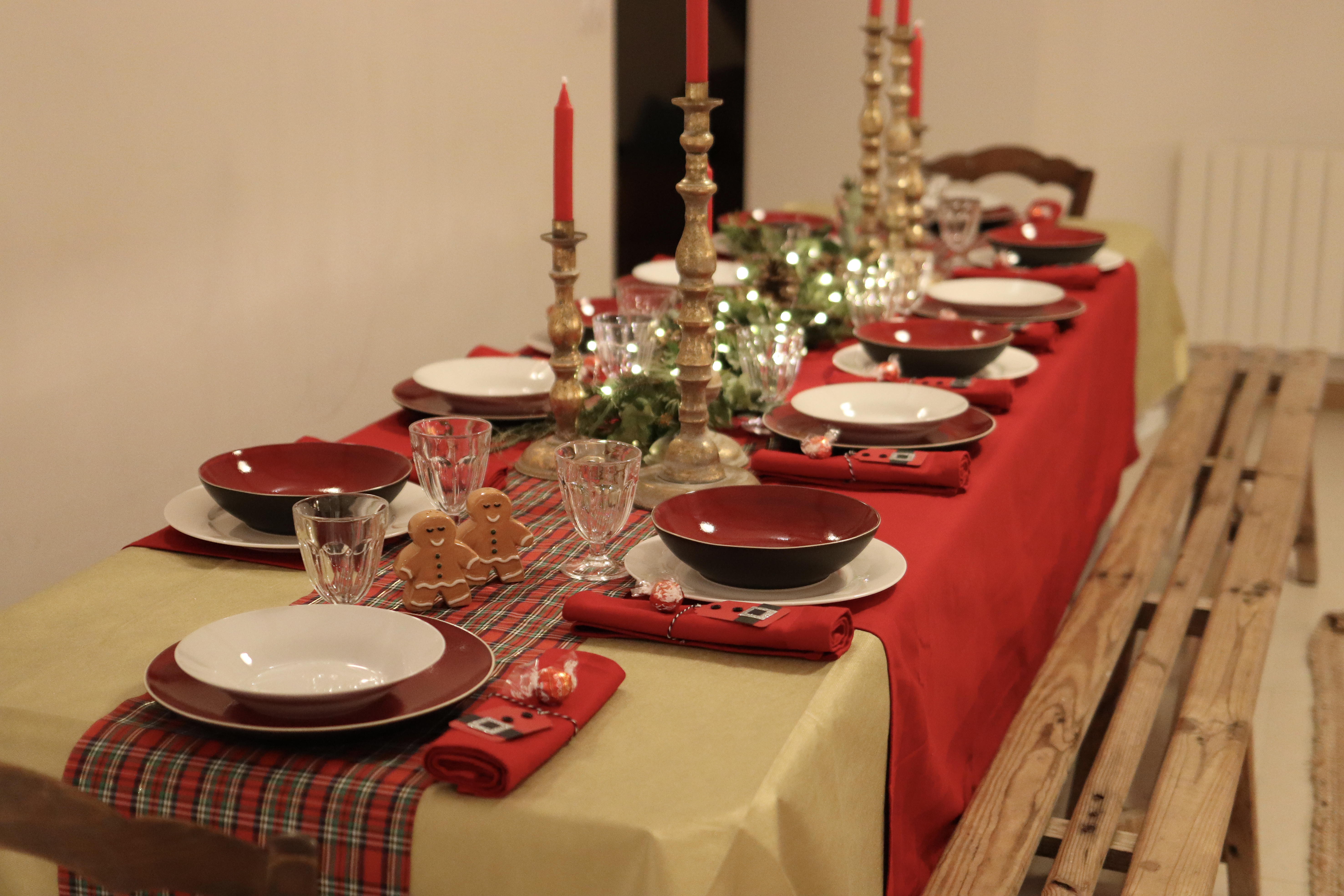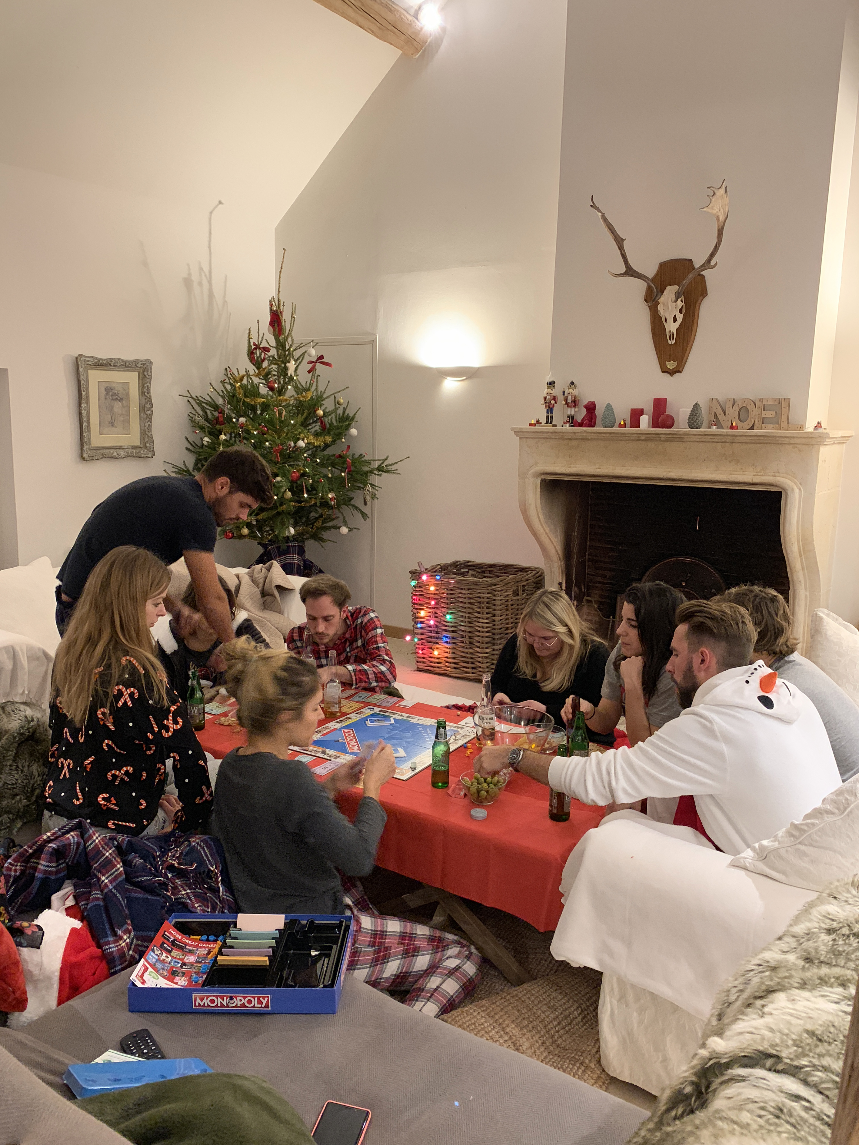 Je suis arrivée la veille avec Nico et une amie pour tout décorer. J’ai rangé dans un placard quelques déco, coussins… (en prenant des photos avant pour bien tout replacer ensuite) et j’ai décoré un sapin, ajouté des guirlandes lumineuses, des coussins, des plaides… je suis même venue avec ma vaisselle et quelques décorations pour ma table et la cheminée.