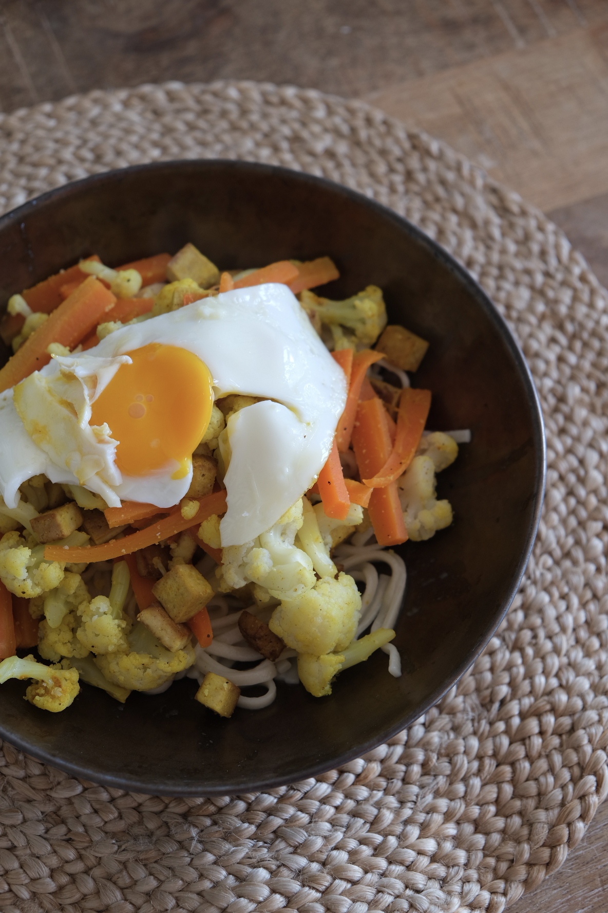 Poêlée “asiatique” : carotte nouilles œufs tofu