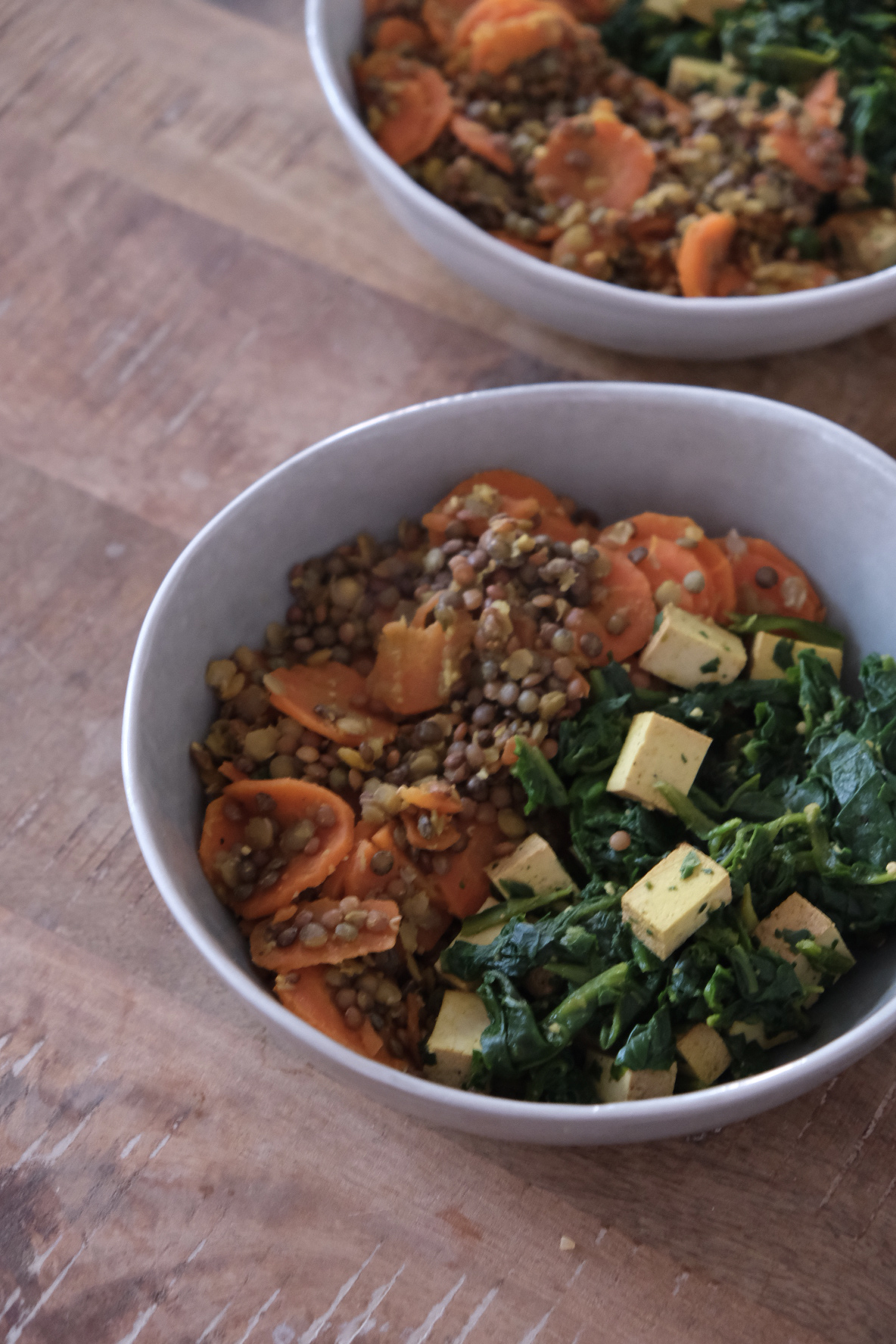 Lentilles carottes épinard tofu fumé