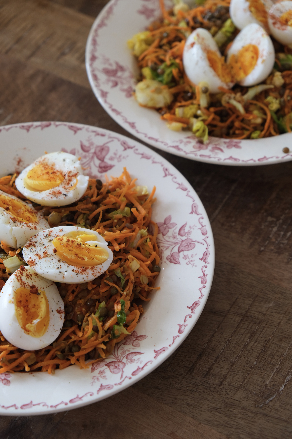 Salade de lentilles : carotte radis œufs mollets