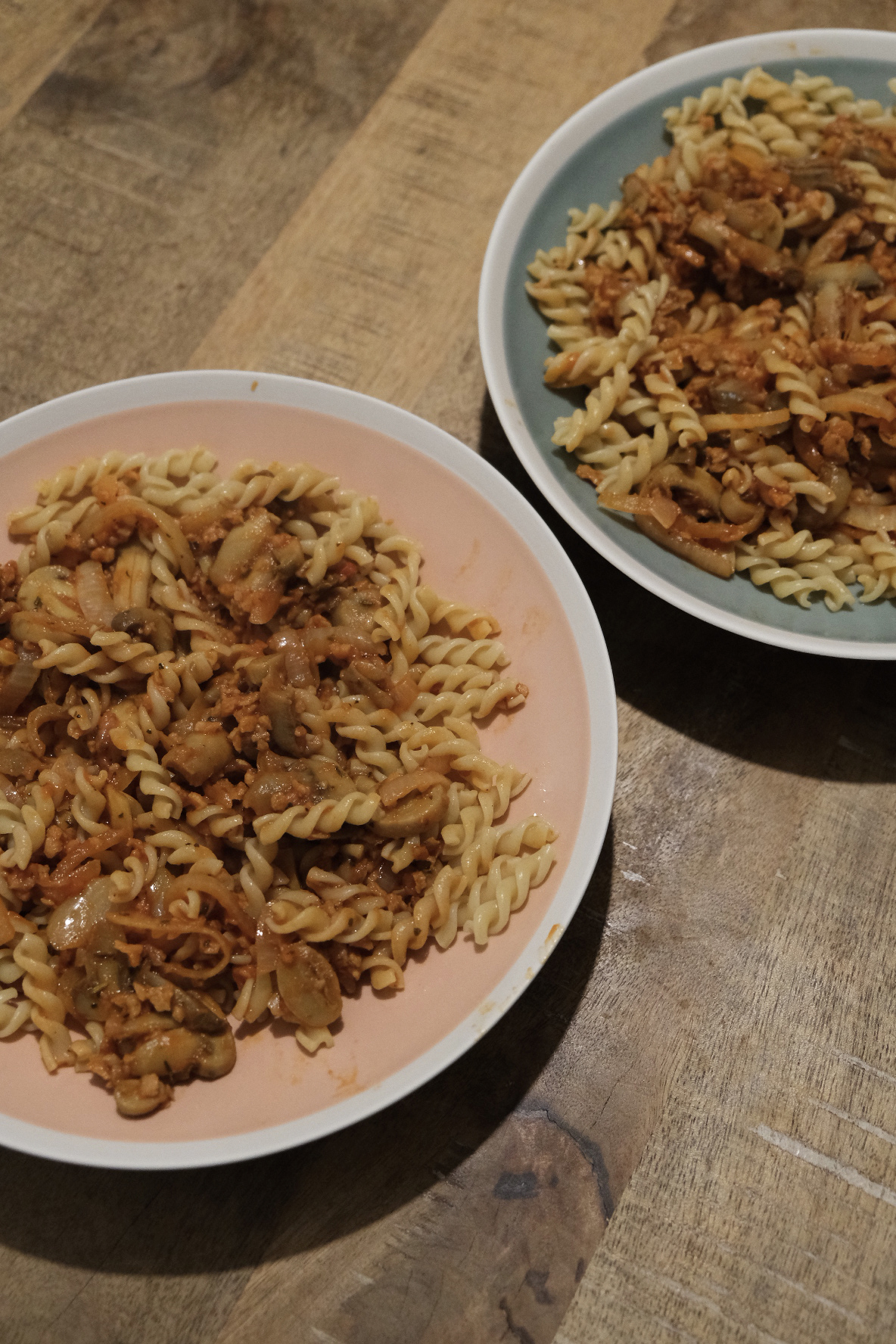 Pâtes (spaghetti complètes ou semi- complètes) bolognaise veggie (protéines de soja déshydratées) ou pas
