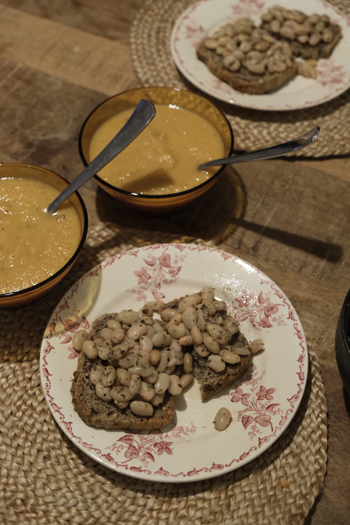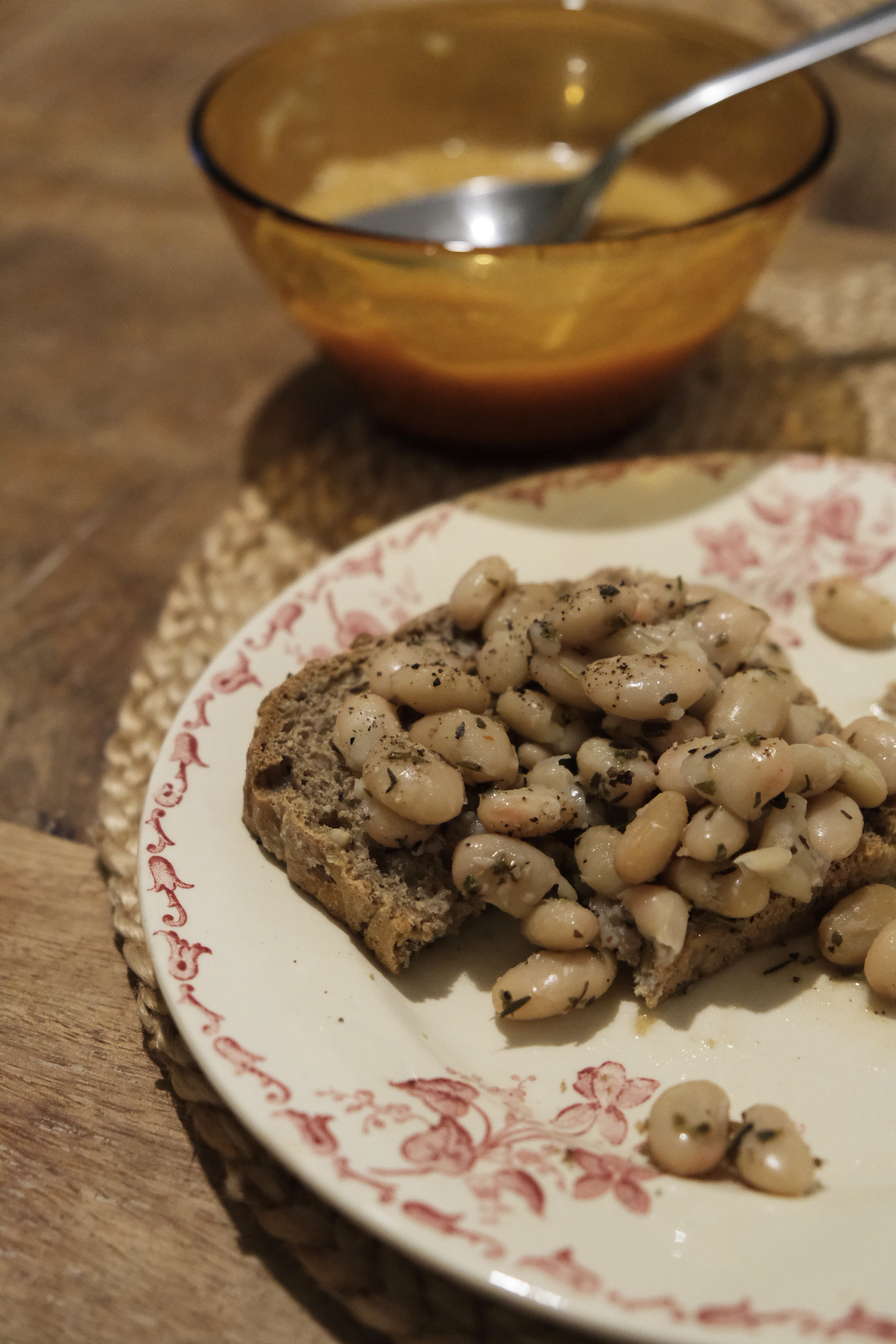 + tartines grillées avec haricots blancs fumants dessus