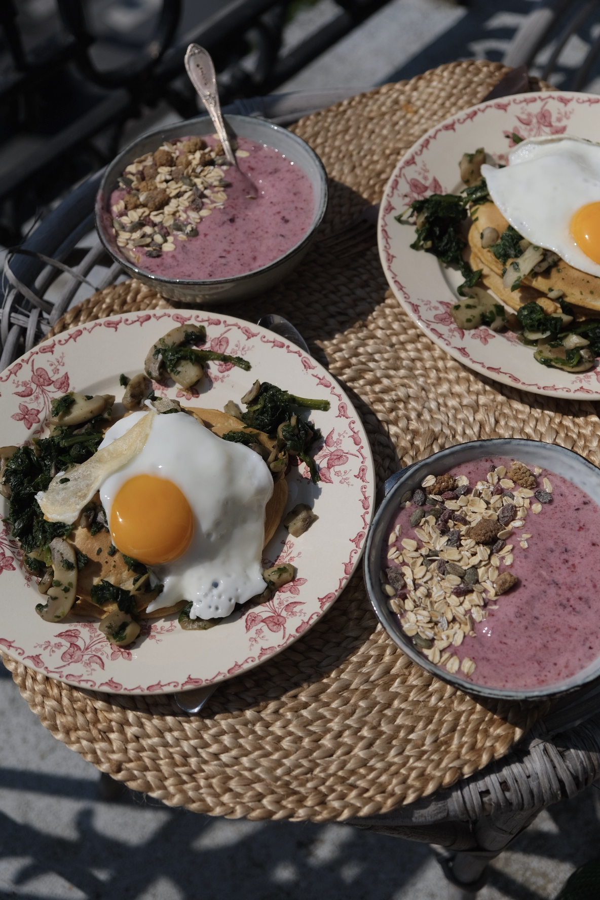 et salade verte à coté dans tous les cas (on peut ne pas mettre d’oeuf dans la recette, ça fonctionne très bien et avoir un œuf sur le pancakes/la gaufre pour plus de quantités)