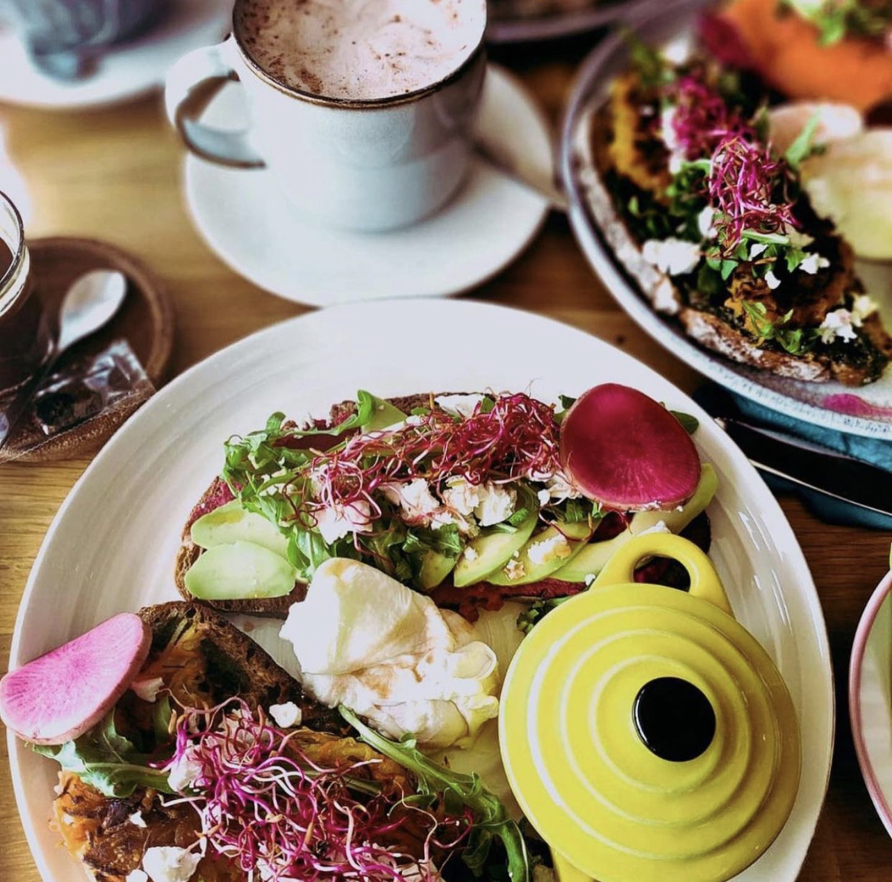 De 8h à 11h Sweet pea propose du bon café, des thés, chocolat chaud, scones, cinnamon toasts, oeuf à la coque, granola et breakfast bun !