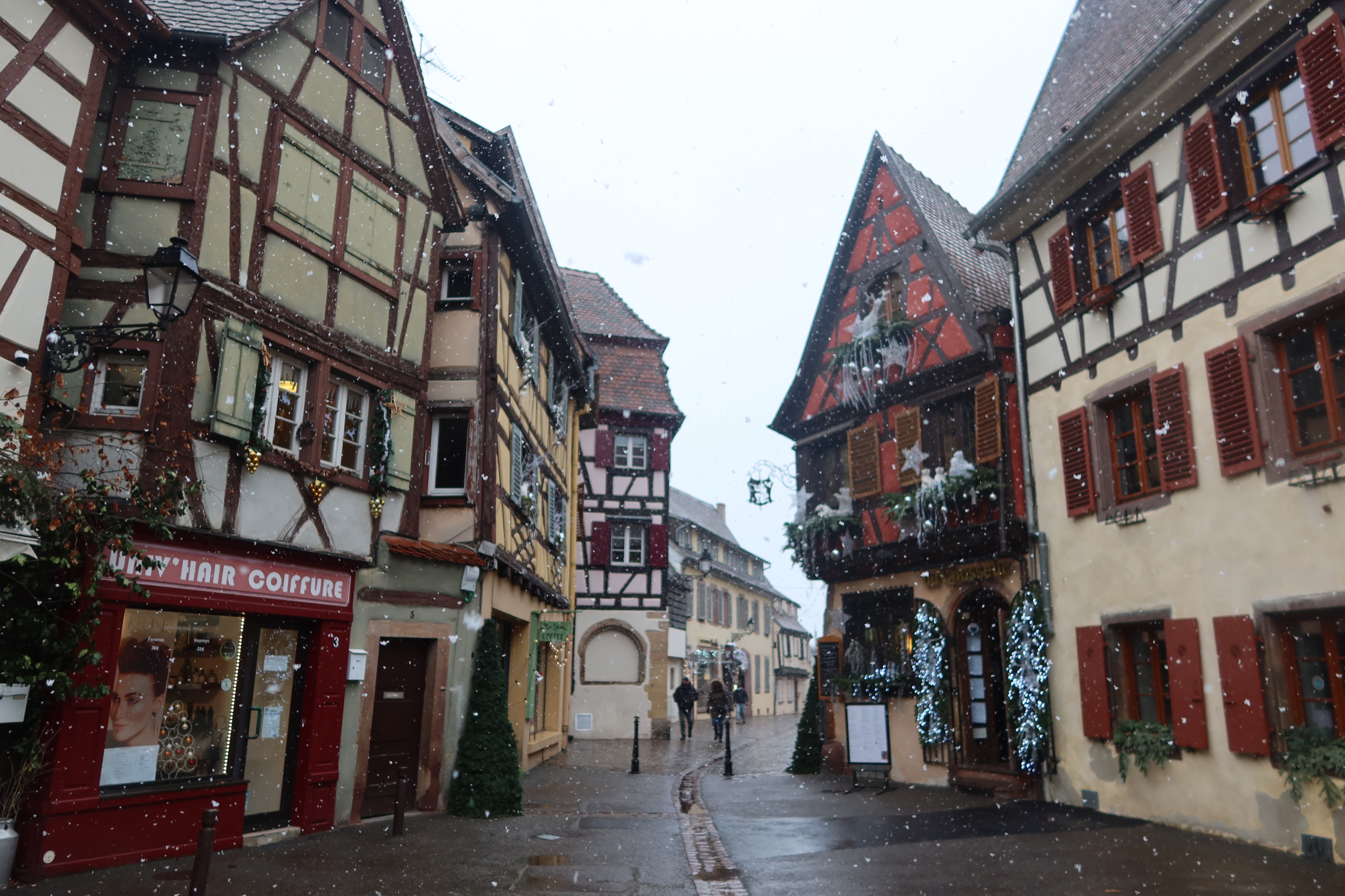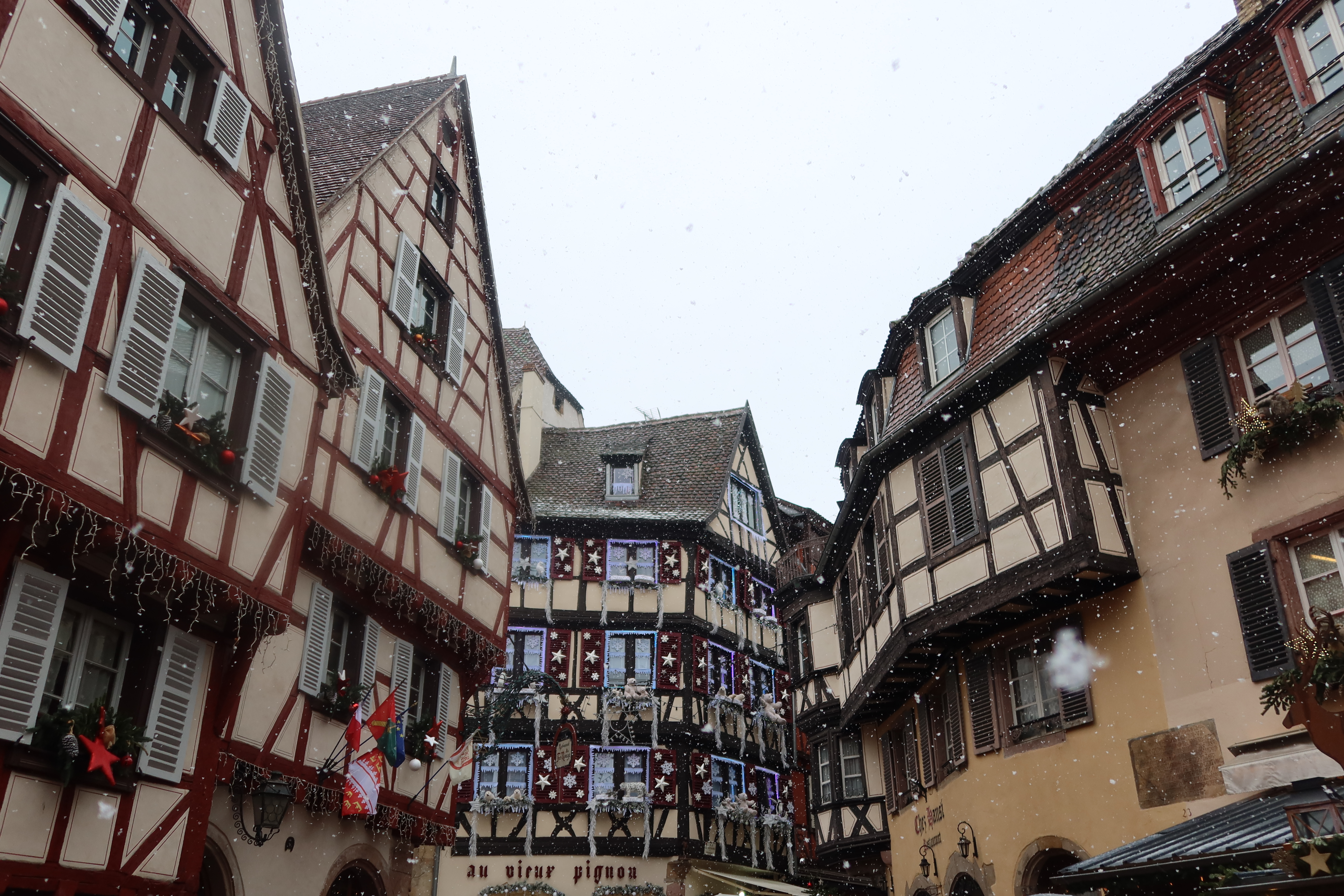 Journée dans Colmar à découvrir tous les marchés de Noël. Il y en a partout dans le centre ville autour des places de Colmar. Il neigeait le matin, c’était magique.