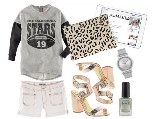 Top long H&M, short Diesel + Edun, pochette ASOS, sandales Ted Baker, montre Lacoste Live, vernis holographique Color Club et mon nouveau compte Google+.…