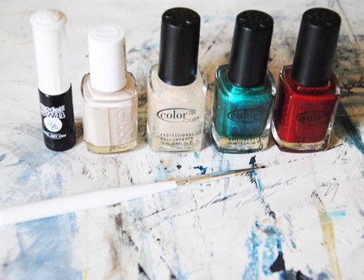 17 décembre 2012Pour ce X-mas nail art il vous faut : -Vernis noir au pinceau très fin : ici Model’s OWN -Vernis clair : ici Essie Sand Tropez -Vernis vert, doré et rouge : ici Color Club …