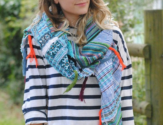 13 août 2012J’ai passé le week-end sur l’île d’Oléron. Les journées étaient chaudes et les soirées un peu plus fraiches. Ma meilleure alliée a été cette superbe écharpe ! Coup de cœur pour les pompons…