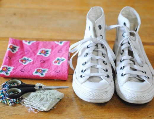19 juillet 2012Pour relooker vos Converse il vous faut / To custom yours Converse you need : une paire de Converse / a paire of Converse du tissus / some pieces of fabric…