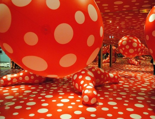 Yayoi Kusama est une artiste qui m’avait fascinée durant mes études. Elle vie depuis son plus jeune âge avec des hallucinations qui nourrissent son travail. Elle voit littéralement des pois partout et entend des cris…