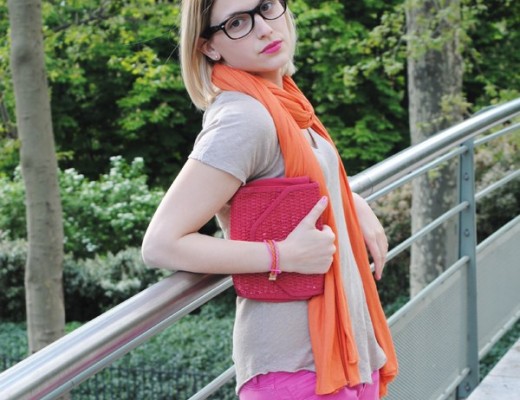 20 avril 2011Le parc de Bercy, un endroit que j’adore, idéal pour vous faire découvrir cette tenue color bloc. Foulard orange et pantalon fuchsia Zara, tee-shirt et bracelet H&m, vernis à ongles Barry…