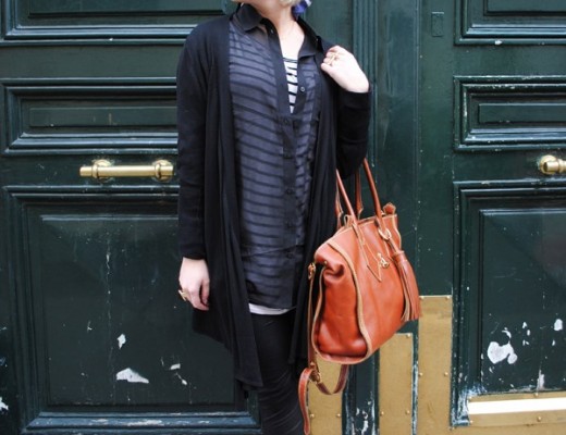Hairband dior, marinière Bershka, chemise transparante h&m, gilet Zara, tregging Bershka, chaussures fripe, bagues asos et h&m, boucle d’oreille moa, vernis chanel+pailettes, sac Vivienne westowood.…