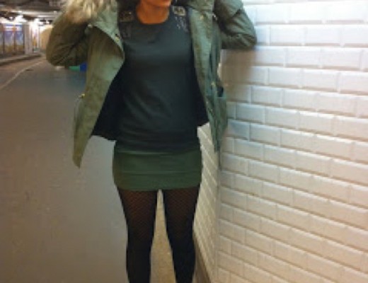 18 septembre 20102h, le métro ferme, et moi j’y reste. Parka kaki col fausse fourrure, jupe kaki moulante primark, tee shirt military primark, collant fantasy et compensées argentées.…