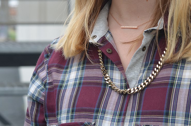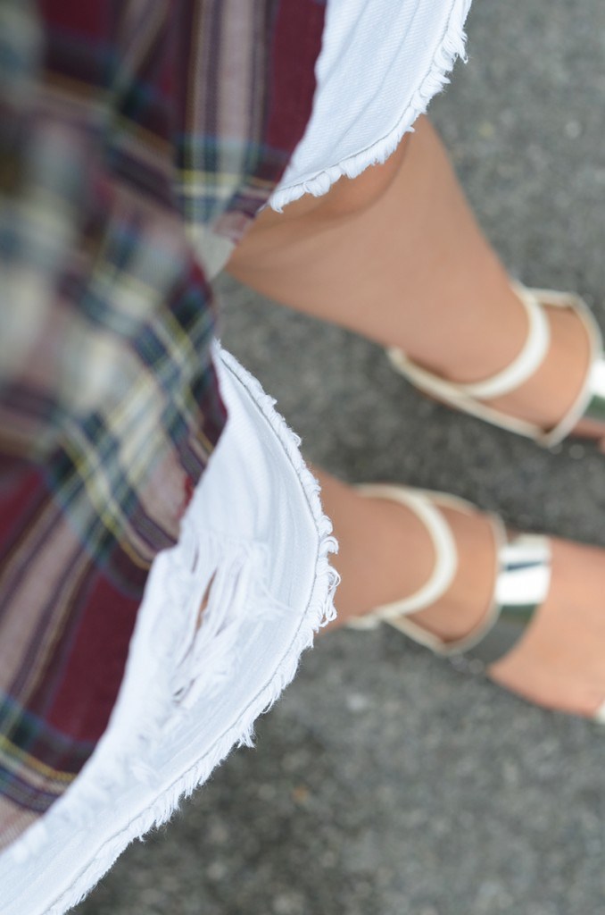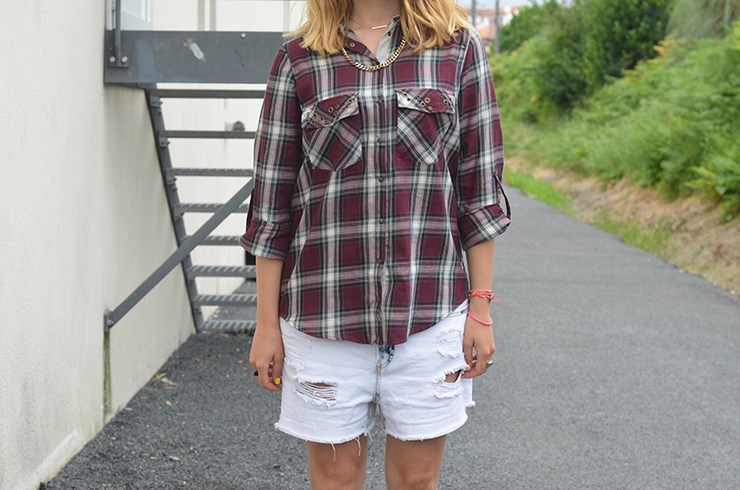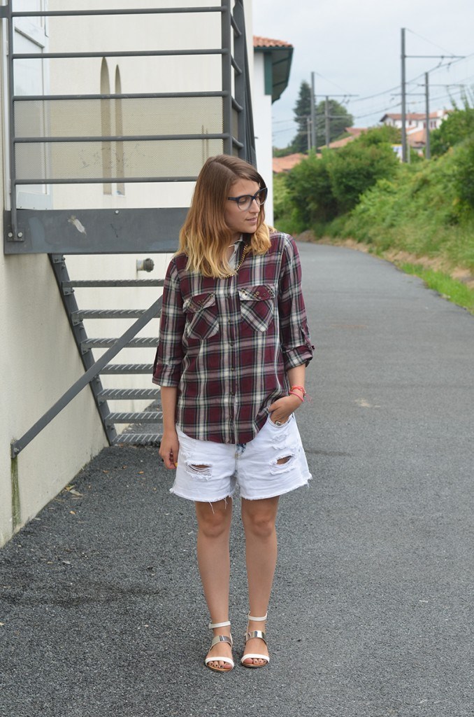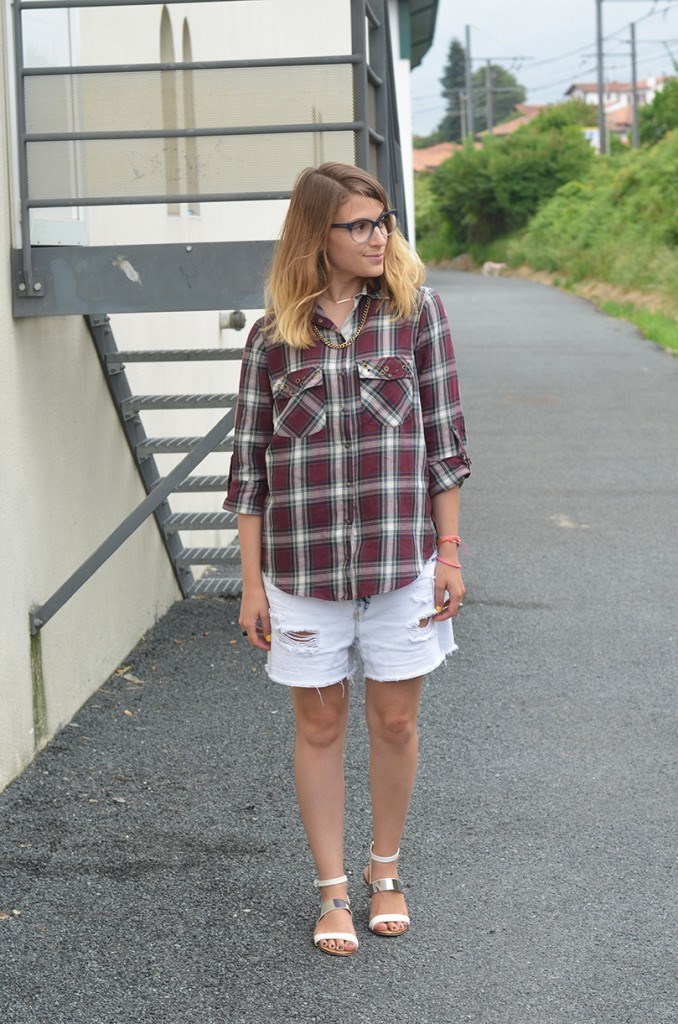 Chemise (soldes) Zara, collier Swarovski, chaîne Mademoiselle Pierre, short (soldes) et sandales (collection SS13) Zara,
