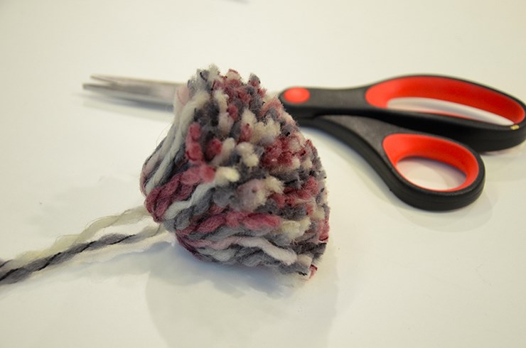 Retaillez le pompon si nécéssaire sans toucher au brin de laine utiliser pour le nœud.