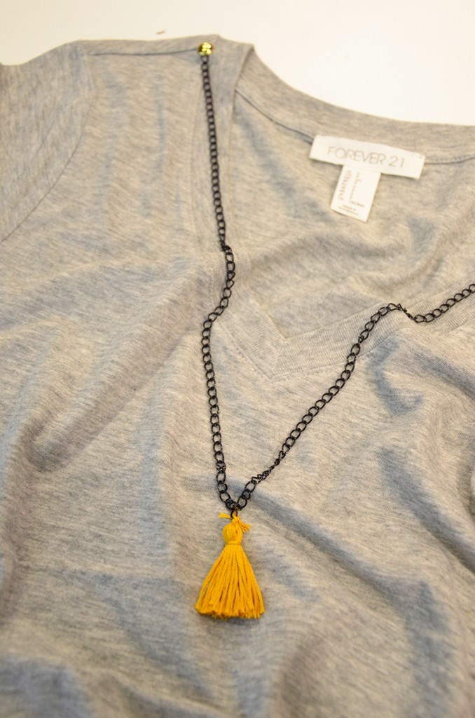 Toujours dans l’idée d’une customisation rapide et simple voici une idée pour créer un collier sur un tee-shirt.