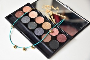 Ce collier est signé Alexandra Margnat. Une de mes couleurs préférées en bijoux est le turquoise. Qui se marie si bien avec l’argent comme le doré. Les grelots de ce sautoir long et fin dégagent une petite musique toute la journée quand je le porte. Je crois être la seule à l’entendre, j’adore.