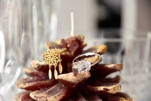 Kelly et Charles travaillent avec un artisan Français qui monte des bijoux avec des pierres semi-précieuses/minérales. Les bijoux sont vendus sur leur site Dulce de leche. J’ai eu un coup de cœur pour cette bague qui offre une pierre d’un côté du doigt et de l’autre un brillant. Le résultat est très raffiné une fois porté.